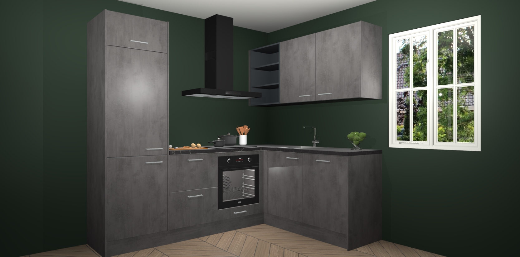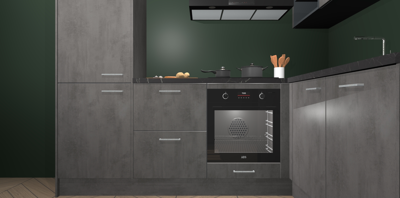 Dit model biedt u voldoende opbergruimte en vijf ingebouwde apparaten: een oven, inductiekookplaat, afzuigkap, vaatwasser en koelkast. Deze apparaten kunnen gemakkelijk worden geüpgrade naar AEG nadat u besteld heeft. De verschillende laden en kastjes bevatten softclose-deuren waardoor ze gezellig dichtvallen met een geruststellend helemaal geruisloos geluid. En dat is nog niet alles! We garanderen ook dat de prijs altijd laag blijft - dus haal nu uw Beton Antraciet keuken Krakau terwijl het kan.