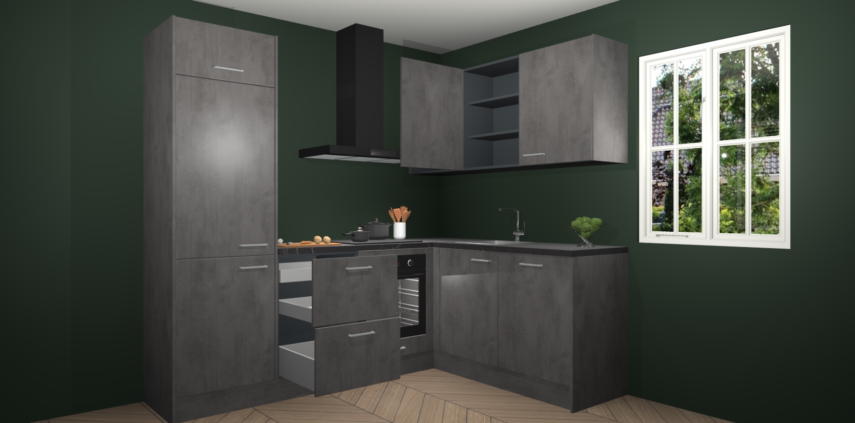 Bestellen was nog nooit zo makkelijk en we leveren met slechts 7 weken; zodra de keuken arriveert staan de kasten voor gemonteerd klaar om er alles aan te doen dat u hem gemakkelijk zelf kunt installeren! Eén ding is zeker: met de Beton Antraciet keuken Krakau slaagt u erin modischer, modernere keukens uit te rusten die tientallen jaren meegaan! Haal snel uw Beton Antraciet keuken Krakau - of u nu net begint of al 'levenservaring' hebt in de keukendroomloopbaan - want dit topmodel van onze collectie wilt u absoluut niet missen.