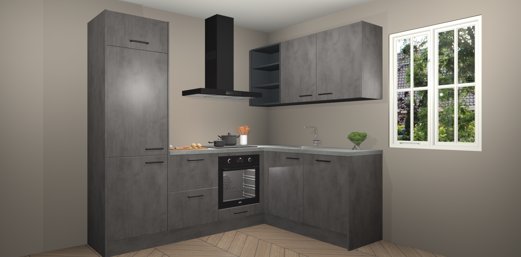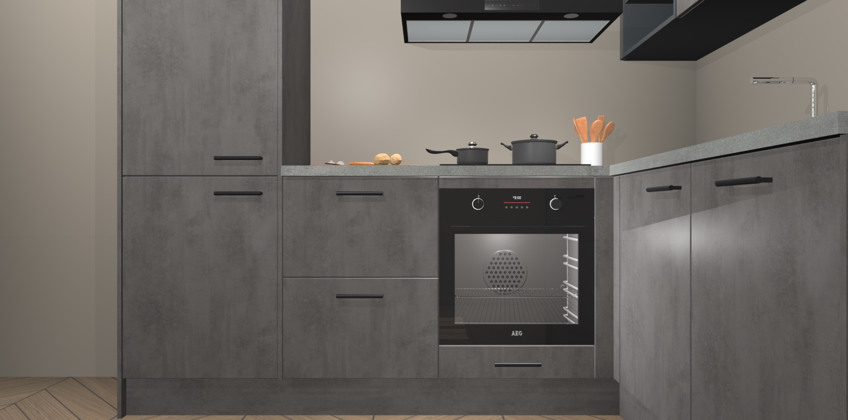 Dit model biedt u voldoende opbergruimte en vijf ingebouwde apparaten: een oven, inductiekookplaat, afzuigkap, vaatwasser en koelkast. Deze apparaten kunnen gemakkelijk worden geüpgrade naar AEG nadat u besteld heeft. De verschillende laden en kastjes bevatten softclose-deuren waardoor ze gezellig dichtvallen met een geruststellend helemaal geruisloos geluid. En dat is nog niet alles! We garanderen ook dat de prijs altijd laag blijft - dus haal nu uw Beton Antraciet keuken Krakau terwijl het kan.