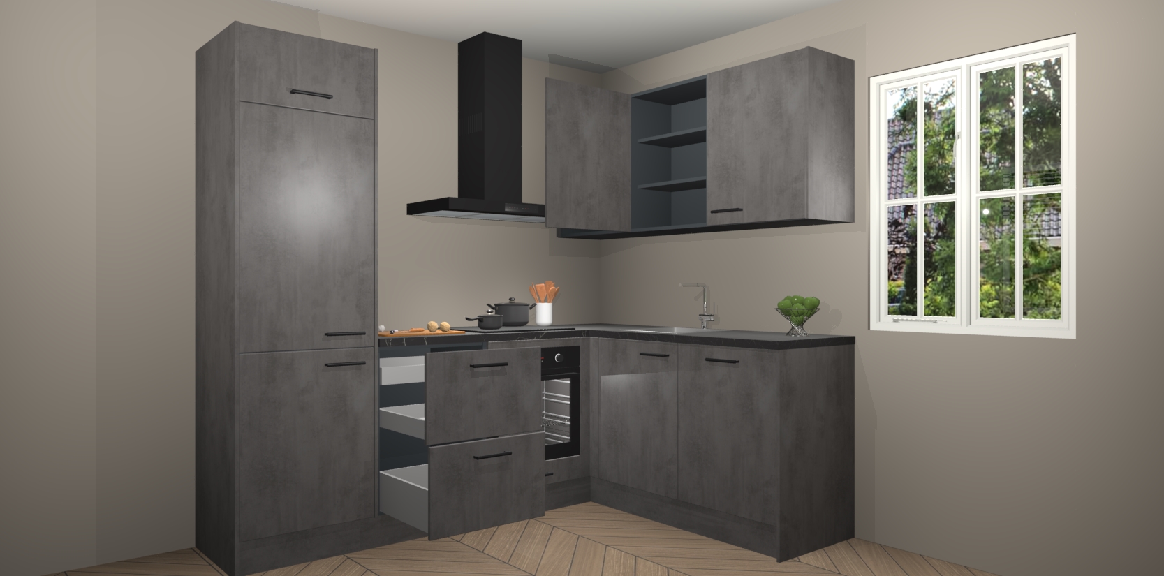 Bestellen was nog nooit zo makkelijk en we leveren met slechts 7 weken; zodra de keuken arriveert staan de kasten voor gemonteerd klaar om er alles aan te doen dat u hem gemakkelijk zelf kunt installeren! Eén ding is zeker: met de Beton Antraciet keuken Krakau slaagt u erin modischer, modernere keukens uit te rusten die tientallen jaren meegaan! Haal snel uw Beton Antraciet keuken Krakau - of u nu net begint of al 'levenservaring' hebt in de keukendroomloopbaan - want dit topmodel van onze collectie wilt u absoluut niet missen.