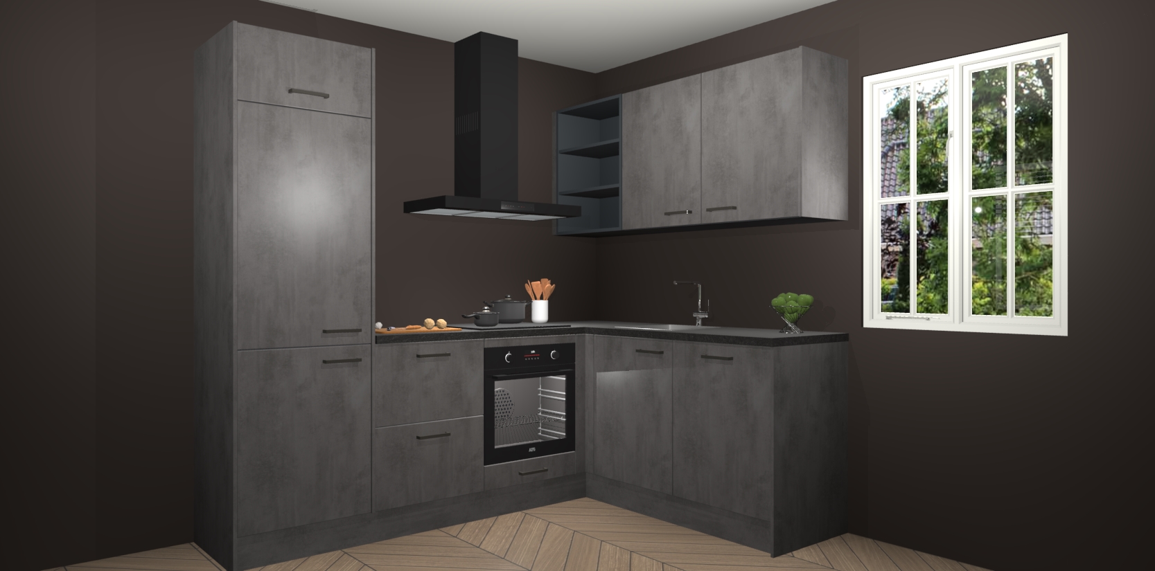 Dit model biedt u voldoende opbergruimte en vijf ingebouwde apparaten: een oven, inductiekookplaat, afzuigkap, vaatwasser en koelkast. Deze apparaten kunnen gemakkelijk worden geüpgrade naar AEG nadat u besteld heeft. De verschillende laden en kastjes bevatten softclose-deuren waardoor ze gezellig dichtvallen met een geruststellend helemaal geruisloos geluid. En dat is nog niet alles! We garanderen ook dat de prijs altijd laag blijft - dus haal nu uw Beton Antraciet keuken Krakau terwijl het kan.