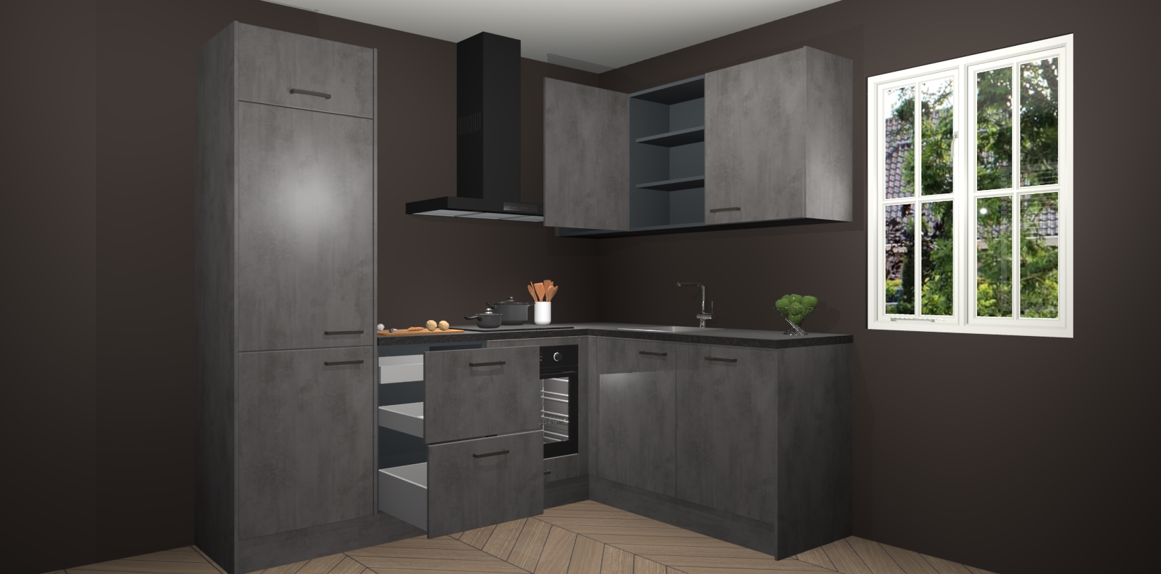 Bestellen was nog nooit zo makkelijk en we leveren met slechts 7 weken; zodra de keuken arriveert staan de kasten voor gemonteerd klaar om er alles aan te doen dat u hem gemakkelijk zelf kunt installeren! Eén ding is zeker: met de Beton Antraciet keuken Krakau slaagt u erin modischer, modernere keukens uit te rusten die tientallen jaren meegaan! Haal snel uw Beton Antraciet keuken Krakau - of u nu net begint of al 'levenservaring' hebt in de keukendroomloopbaan - want dit topmodel van onze collectie wilt u absoluut niet missen.