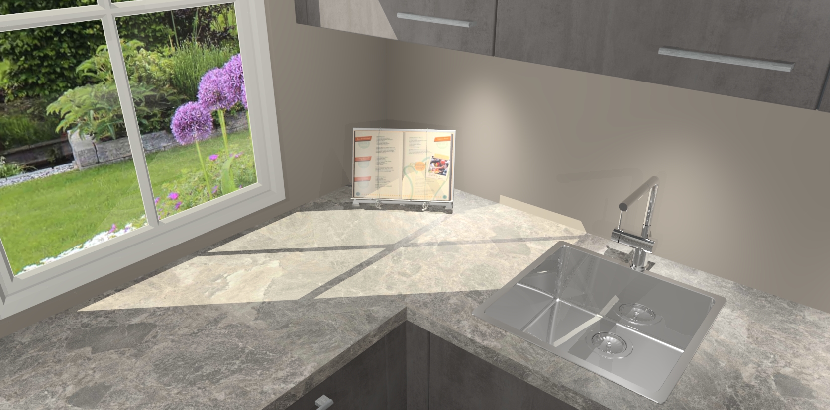 - Bij een hoekwerkblad zijn de hoeken in gevreesd en op maat gemaakt