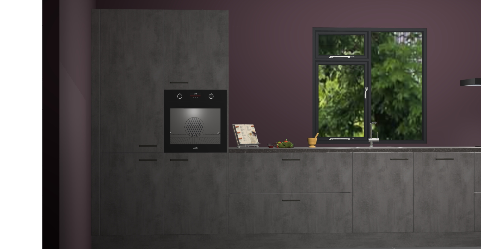 De Beton antraciet keuken Lille wordt geleverd met vijf inbouwapparaten - een oven, inductiekookplaat, afzuigkap, vaatwasser en koelkast. Maar dat is nog niet alles! Na bestelling kunnen deze apparaten eenvoudig worden geüpgraded naar premium AEG-apparatuur. Bovendien is er zelfs de optie om de oven te vervangen door een combimagnetron of uw inductiekookplaat te vervangen door een kookplaat met geïntegreerde afzuiging.