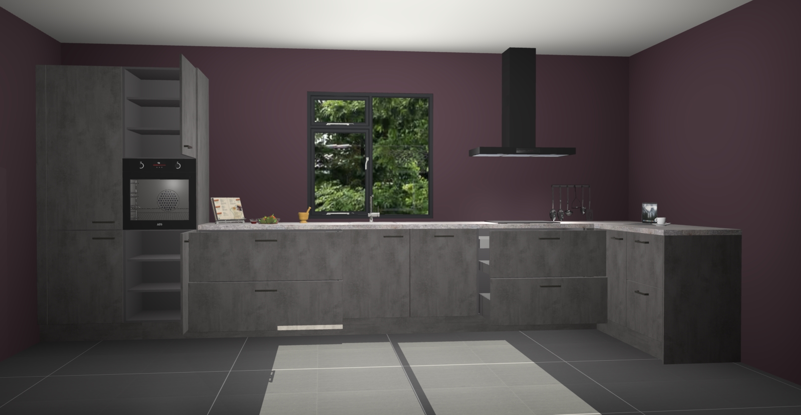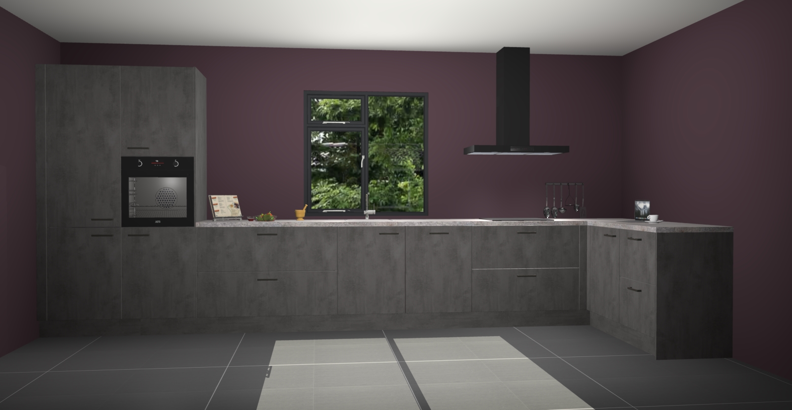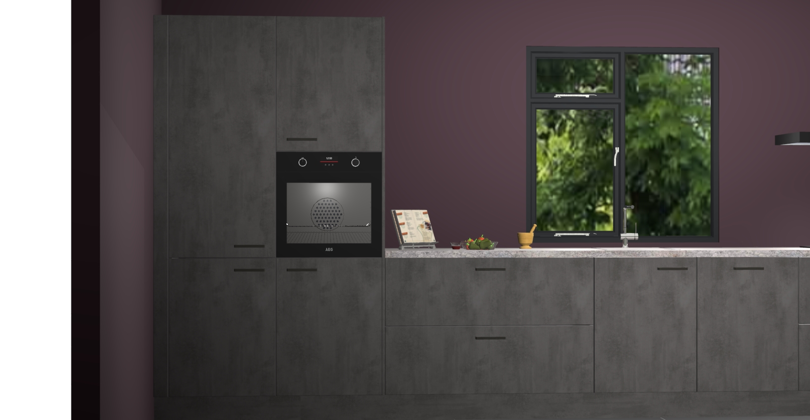 De Beton antraciet keuken Lille wordt geleverd met vijf inbouwapparaten - een oven, inductiekookplaat, afzuigkap, vaatwasser en koelkast. Maar dat is nog niet alles! Na bestelling kunnen deze apparaten eenvoudig worden geüpgraded naar premium AEG-apparatuur. Bovendien is er zelfs de optie om de oven te vervangen door een combimagnetron of uw inductiekookplaat te vervangen door een kookplaat met geïntegreerde afzuiging.