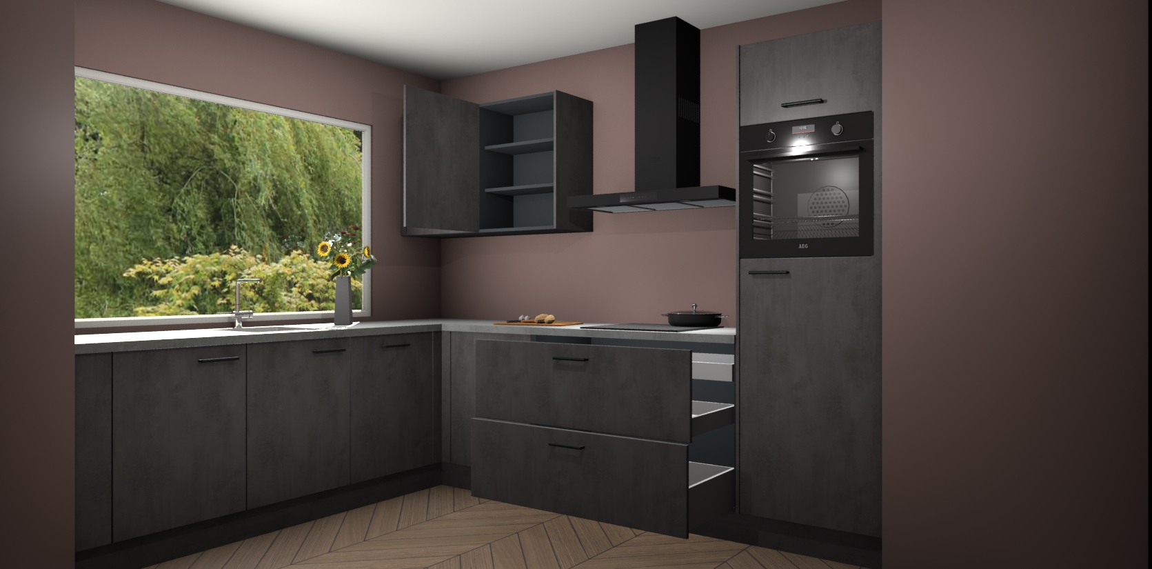 Bent u op zoek naar een onberispelijk keukenontwerp dat Duitse precisie en uitmuntende architectuur ademt? Zoek niet verder - de beton antraciet keuken Limonos biedt de perfecte moderne mix van stijl en functionaliteit.