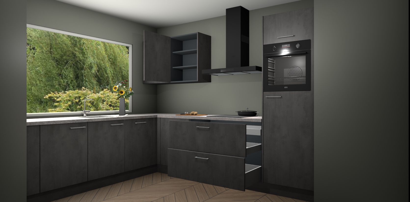 Bent u op zoek naar een onberispelijk keukenontwerp dat Duitse precisie en uitmuntende architectuur ademt? Zoek niet verder - de beton antraciet