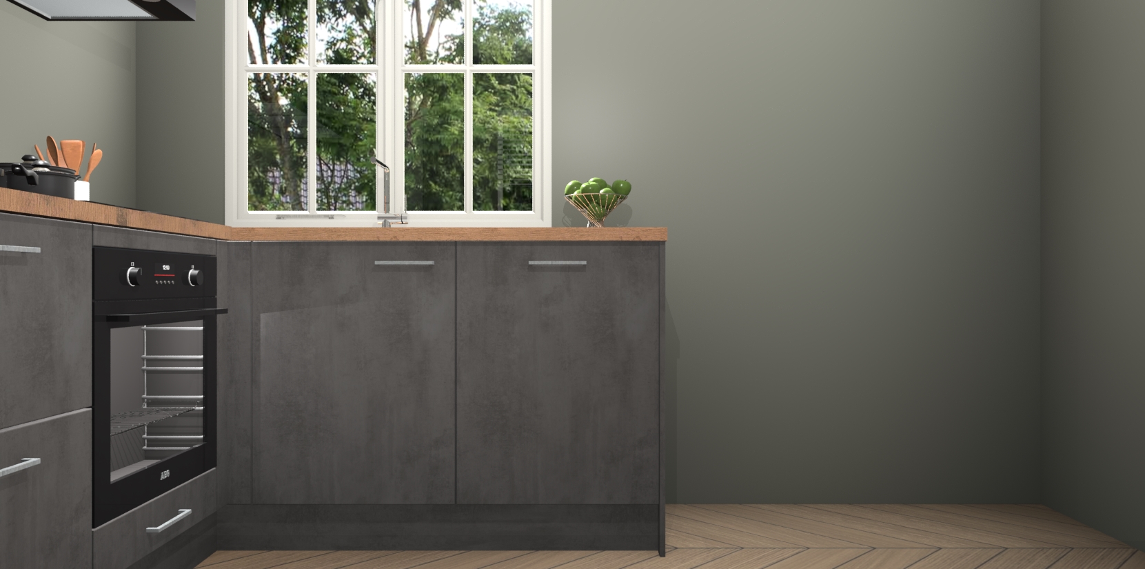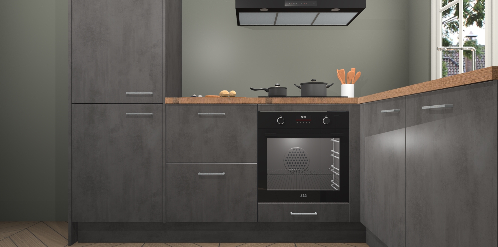 Met de Beton Antraciet keuken Linz krijgt u 5 op maat gemaakte apparaten: een oven, inductiekookplaat, afzuigkap, vaatwasser en koelkast die na bestelling makkelijk worden geüpgraded naar AEG-producten. Met de zacht sluitende deuren, bent u verzekerd van eenvoudige bediening in stilte. Het kastmeubilair wordt alvast pre-assemblage geleverd waardoor u sneller met het installeren begint. Ook zijn alle deuren voorzien van softclose zodat er geen sporen op de lade blijven als u ze dicht doet. Bovendien hoeft u bij ons geen twijfels of verassingen te hebben: we hebben een vaste lage prijs waardoor u weet wat u mag verwachten bij elke bestelling.