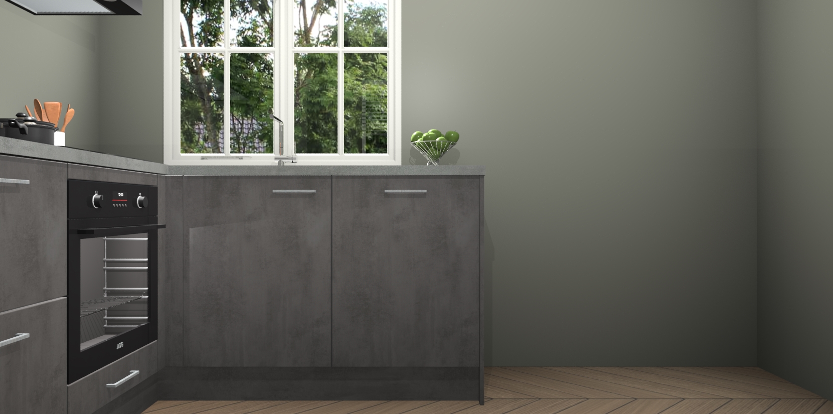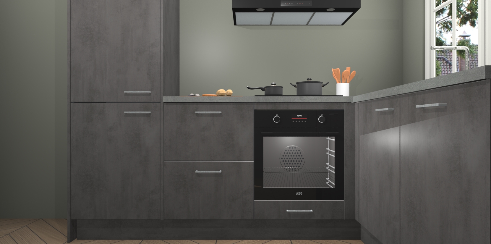 Met de Beton Antraciet keuken Linz krijgt u 5 op maat gemaakte apparaten: een oven, inductiekookplaat, afzuigkap, vaatwasser en koelkast die na bestelling makkelijk worden geüpgraded naar AEG-producten. Met de zacht sluitende deuren, bent u verzekerd van eenvoudige bediening in stilte. Het kastmeubilair wordt alvast pre-assemblage geleverd waardoor u sneller met het installeren begint. Ook zijn alle deuren voorzien van softclose zodat er geen sporen op de lade blijven als u ze dicht doet. Bovendien hoeft u bij ons geen twijfels of verassingen te hebben: we hebben een vaste lage prijs waardoor u weet wat u mag verwachten bij elke bestelling.