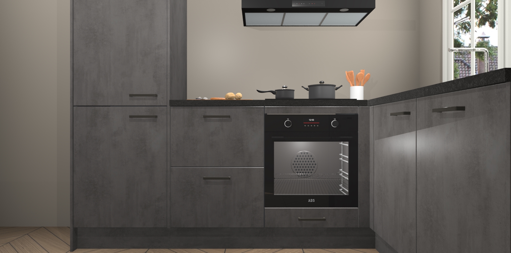 Met de Beton Antraciet keuken Linz krijgt u 5 op maat gemaakte apparaten: een oven, inductiekookplaat, afzuigkap, vaatwasser en koelkast die na bestelling makkelijk worden geüpgraded naar AEG-producten. Met de zacht sluitende deuren, bent u verzekerd van eenvoudige bediening in stilte. Het kastmeubilair wordt alvast pre-assemblage geleverd waardoor u sneller met het installeren begint. Ook zijn alle deuren voorzien van softclose zodat er geen sporen op de lade blijven als u ze dicht doet. Bovendien hoeft u bij ons geen twijfels of verassingen te hebben: we hebben een vaste lage prijs waardoor u weet wat u mag verwachten bij elke bestelling.