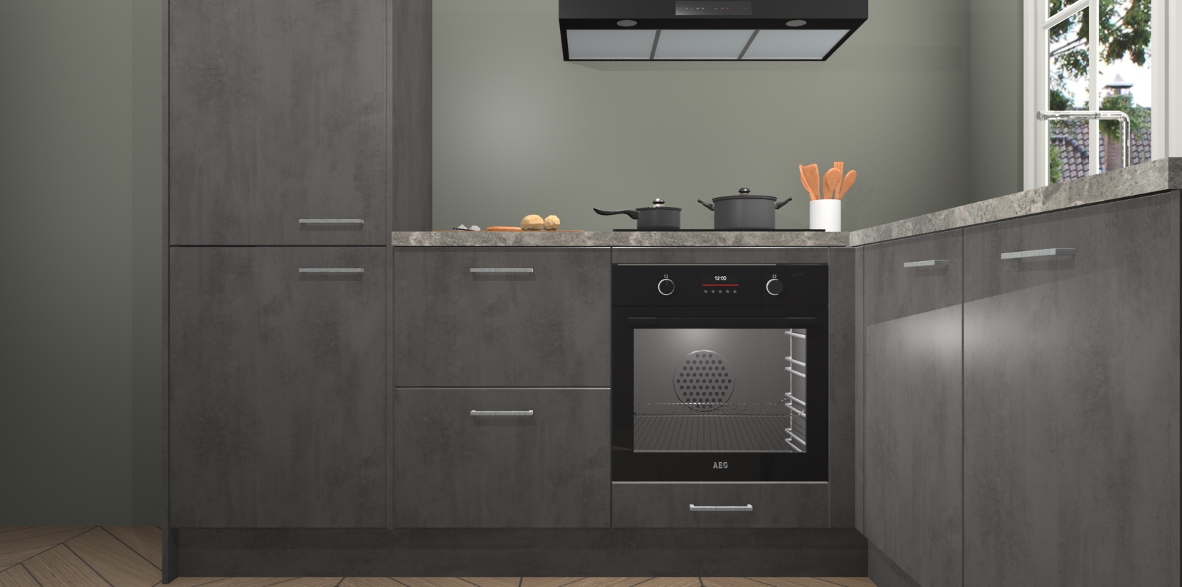 Met de Beton Antraciet keuken Linz krijgt u 5 op maat gemaakte apparaten: een oven, inductiekookplaat, afzuigkap, vaatwasser en koelkast die na bestelling makkelijk worden geüpgraded naar AEG-producten. Met de zacht sluitende deuren, bent u verzekerd van eenvoudige bediening in stilte. Het kastmeubilair wordt alvast pre-assemblage geleverd waardoor u sneller met het installeren begint. Ook zijn alle deuren voorzien van softclose zodat er geen sporen op de lade blijven als u ze dicht doet. Bovendien hoeft u bij ons geen twijfels of verassingen te hebben: we hebben een vaste lage prijs waardoor u weet wat u mag verwachten bij elke bestelling.