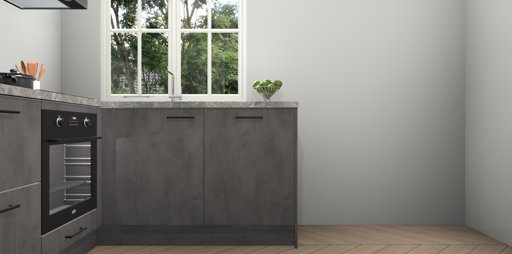 Met de Beton Antraciet keuken Linz krijgt u 5 op maat gemaakte apparaten: een oven, inductiekookplaat, afzuigkap, vaatwasser en koelkast die na bestelling makkelijk worden geüpgraded naar AEG-producten. Met de zacht sluitende deuren, bent u verzekerd van eenvoudige bediening in stilte. Het kastmeubilair wordt alvast pre-assemblage geleverd waardoor u sneller met het installeren begint. Ook zijn alle deuren voorzien van softclose zodat er geen sporen op de lade blijven als u ze dicht doet. Bovendien hoeft u bij ons geen twijfels of verassingen te hebben: we hebben een vaste lage prijs waardoor u weet wat u mag verwachten bij elke bestelling.