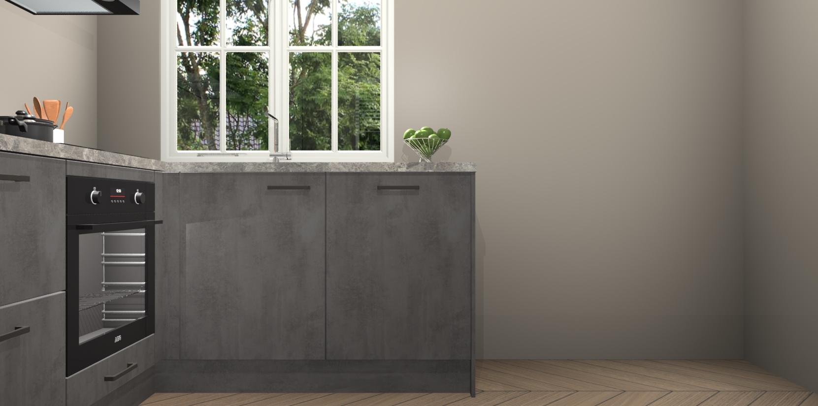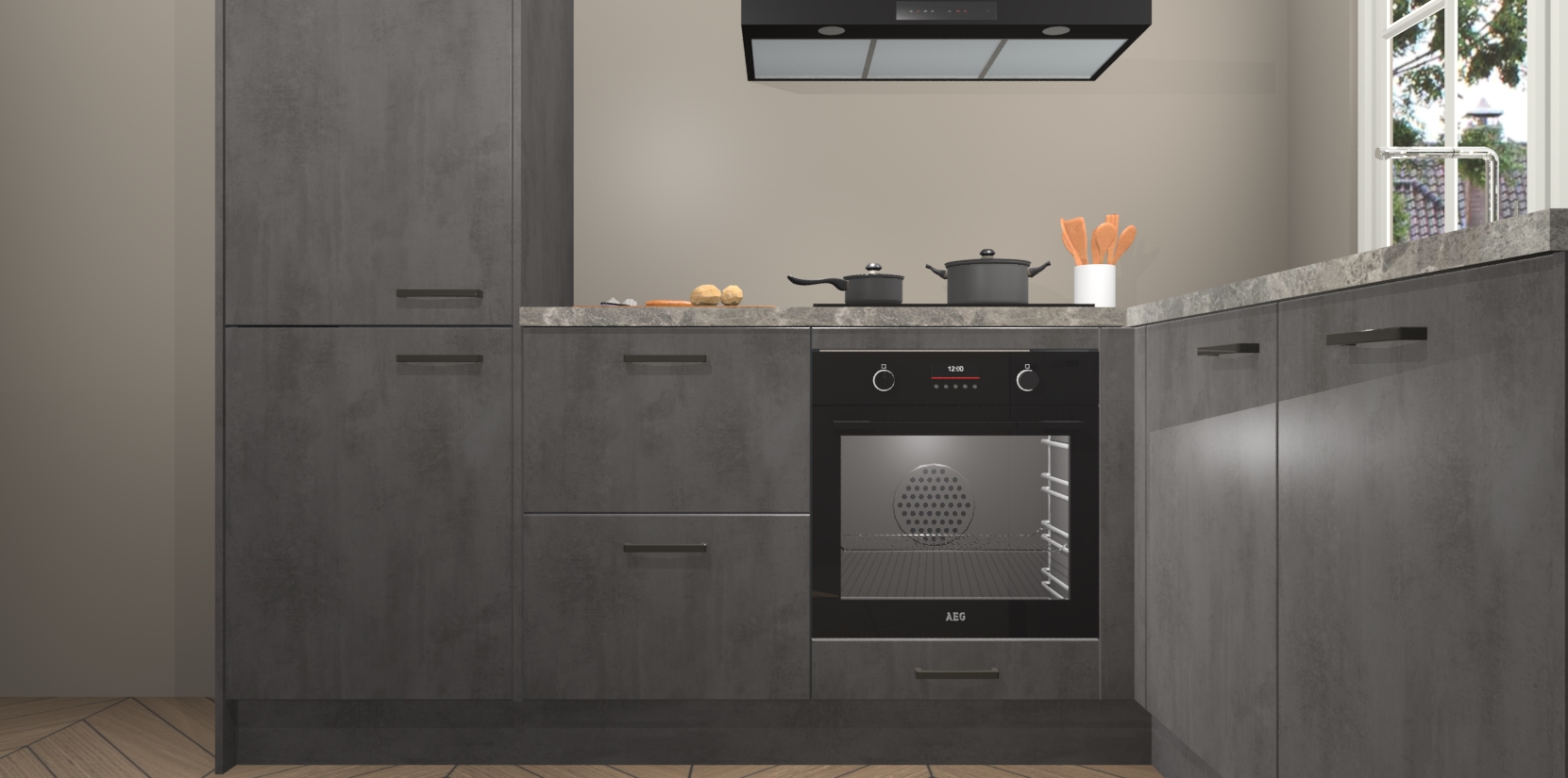 Met de Beton Antraciet keuken Linz krijgt u 5 op maat gemaakte apparaten: een oven, inductiekookplaat, afzuigkap, vaatwasser en koelkast die na bestelling makkelijk worden geüpgraded naar AEG-producten. Met de zacht sluitende deuren, bent u verzekerd van eenvoudige bediening in stilte. Het kastmeubilair wordt alvast pre-assemblage geleverd waardoor u sneller met het installeren begint. Ook zijn alle deuren voorzien van softclose zodat er geen sporen op de lade blijven als u ze dicht doet. Bovendien hoeft u bij ons geen twijfels of verassingen te hebben: we hebben een vaste lage prijs waardoor u weet wat u mag verwachten bij elke bestelling.
