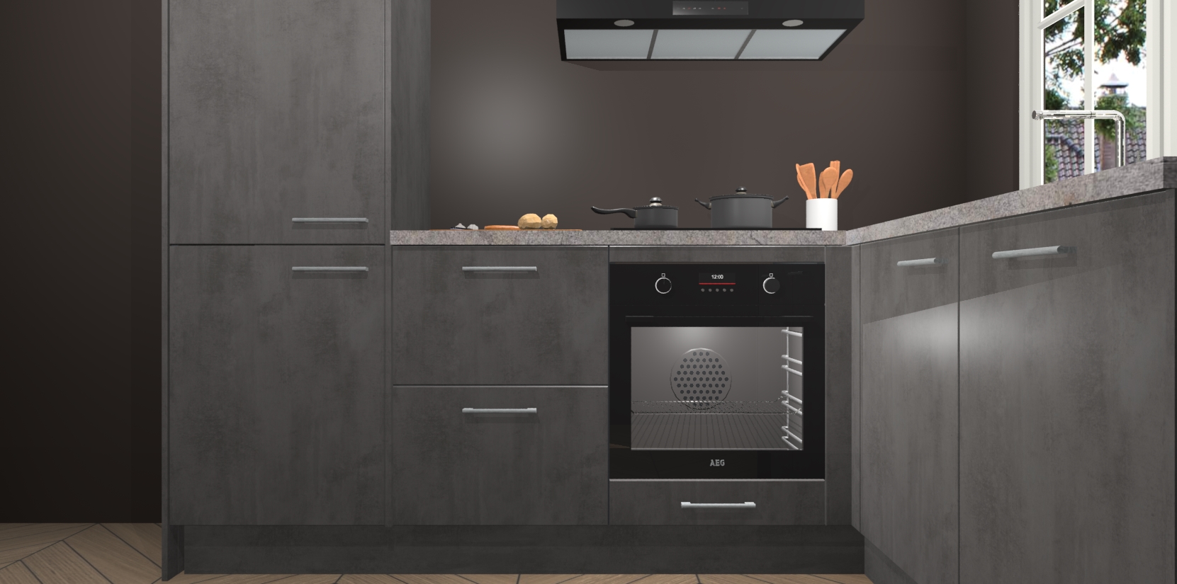 Met de Beton Antraciet keuken Linz krijgt u 5 op maat gemaakte apparaten: een oven, inductiekookplaat, afzuigkap, vaatwasser en koelkast die na bestelling makkelijk worden geüpgraded naar AEG-producten. Met de zacht sluitende deuren, bent u verzekerd van eenvoudige bediening in stilte. Het kastmeubilair wordt alvast pre-assemblage geleverd waardoor u sneller met het installeren begint. Ook zijn alle deuren voorzien van softclose zodat er geen sporen op de lade blijven als u ze dicht doet. Bovendien hoeft u bij ons geen twijfels of verassingen te hebben: we hebben een vaste lage prijs waardoor u weet wat u mag verwachten bij elke bestelling.