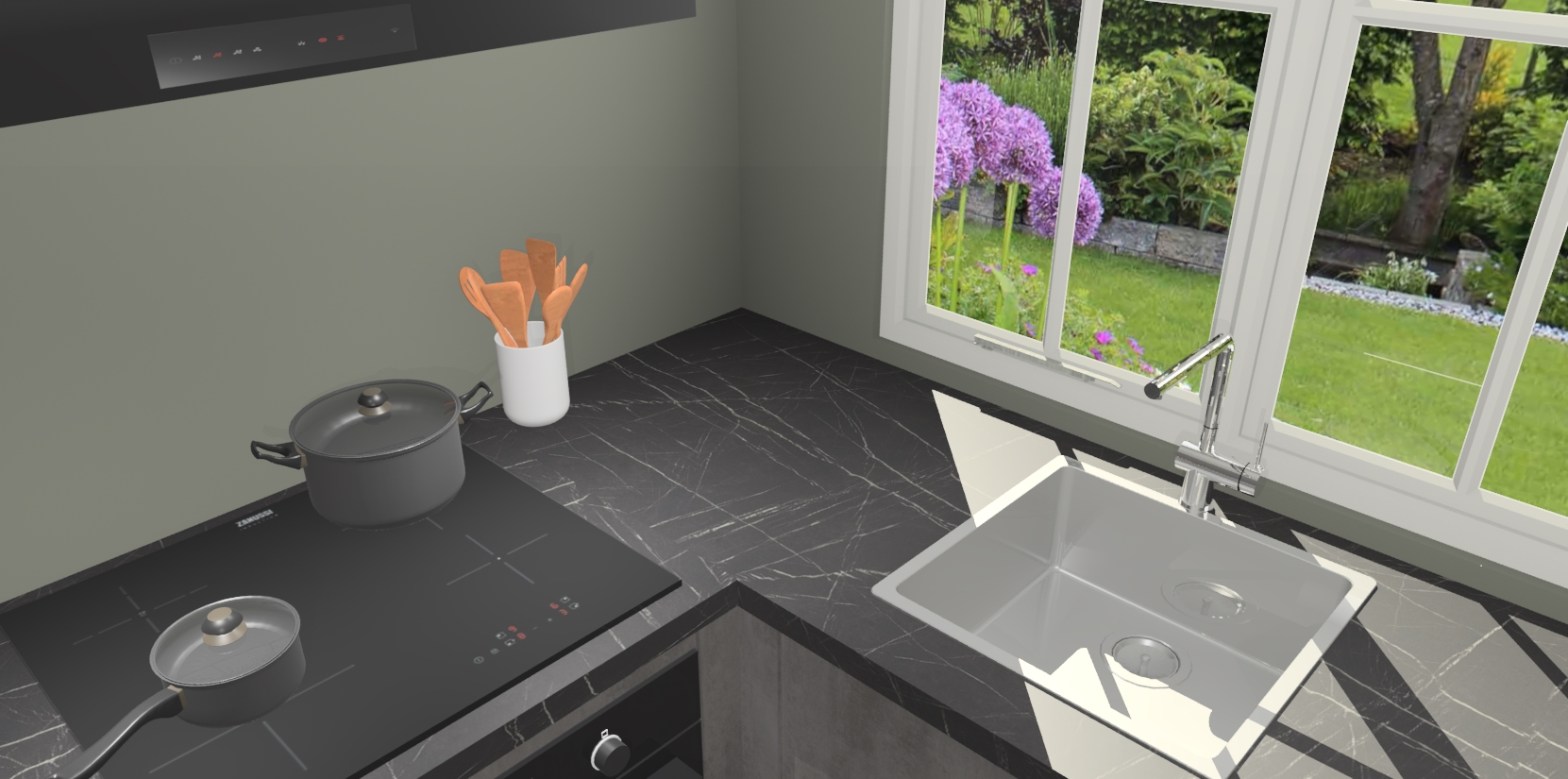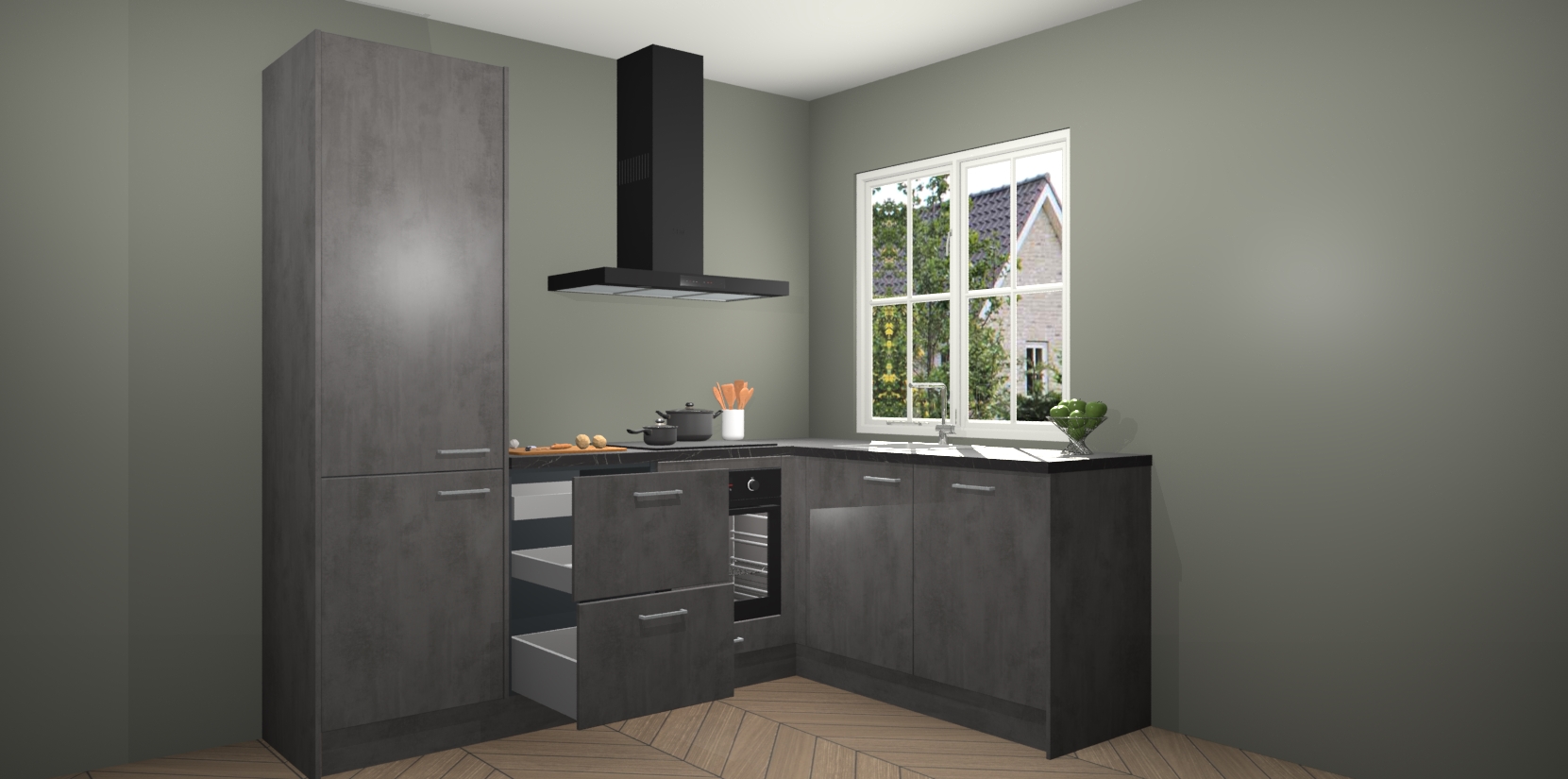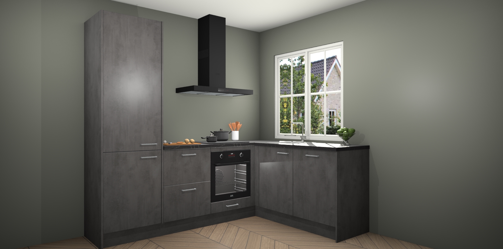 De Beton Antraciet keuken Linz is de perfecte keuze voor uw nieuwe moderne en tijdloze keuken. Ga voor moderne en tijdloze elegantie in uw keuken. De prachtige hoekkeuken biedt een verfrissende kijk op de manier waarop we ons vertrouwde keukenontwerp kunnen aanpassen in een nieuwe stijl. Één blik om alles te zien: zo mooi dat het bijna magisch lijkt.