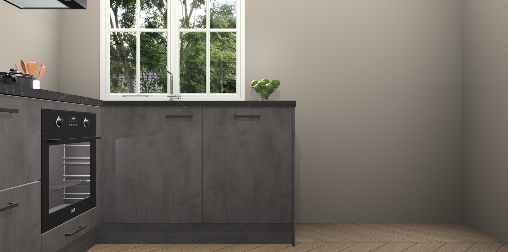 Met de Beton Antraciet keuken Linz krijgt u 5 op maat gemaakte apparaten: een oven, inductiekookplaat, afzuigkap, vaatwasser en koelkast die na bestelling makkelijk worden geüpgraded naar AEG-producten. Met de zacht sluitende deuren, bent u verzekerd van eenvoudige bediening in stilte. Het kastmeubilair wordt alvast pre-assemblage geleverd waardoor u sneller met het installeren begint. Ook zijn alle deuren voorzien van softclose zodat er geen sporen op de lade blijven als u ze dicht doet. Bovendien hoeft u bij ons geen twijfels of verassingen te hebben: we hebben een vaste lage prijs waardoor u weet wat u mag verwachten bij elke bestelling.
