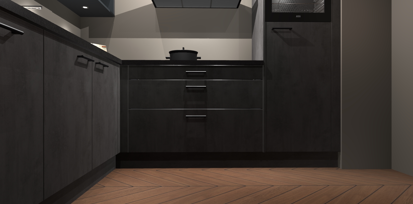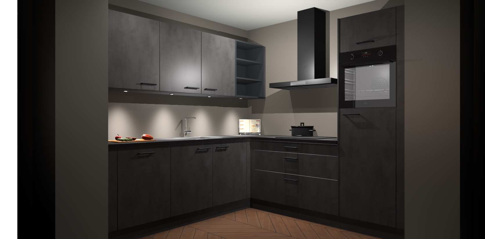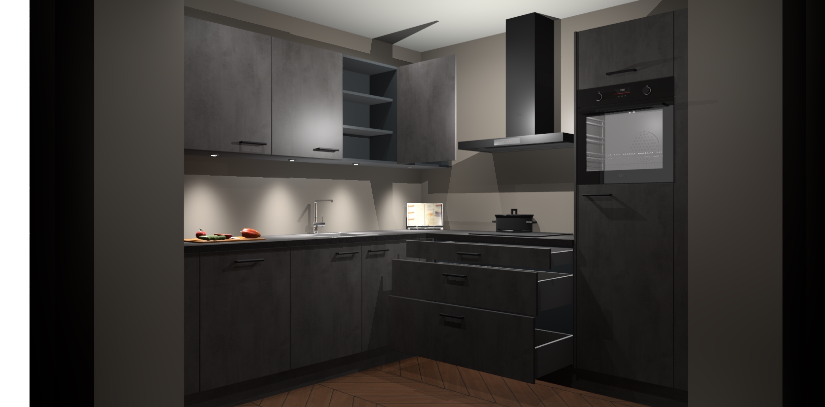 Wij presenteren de revolutie in keukens: de Beton Antraciet keuken Luanda. Met modern design, een tijdloos uiterlijk en kasten die al voor gemonteerd worden geleverd, laat deze stijlvolle keuken uw kookervaring op een hele nieuwe manier transformeren.