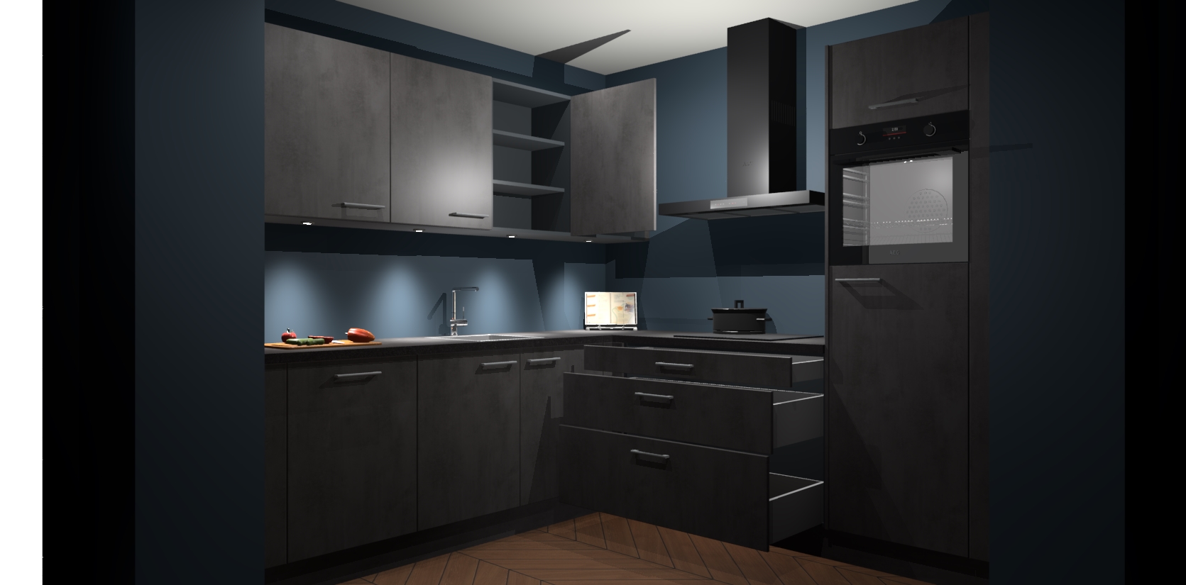 Wij presenteren de revolutie in keukens: de Beton Antraciet keuken Luanda. Met modern design, een tijdloos uiterlijk en kasten die al voor gemonteerd worden geleverd, laat deze stijlvolle keuken uw kookervaring op een hele nieuwe manier transformeren.