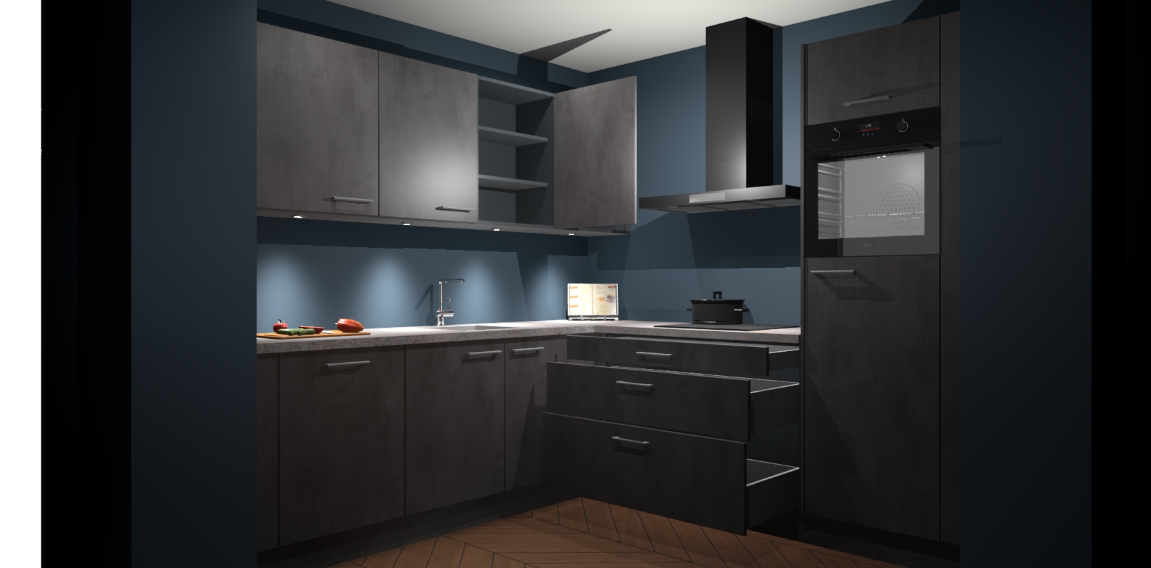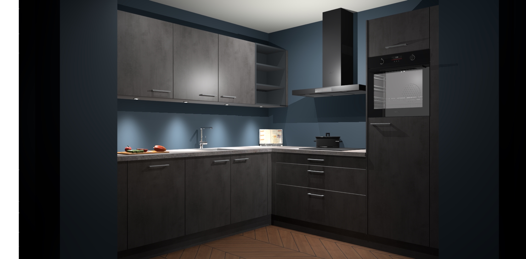 Met een modern, tijdloos design en ruime opslagruimte, zult u zich in no-time thuis voelen in uw nieuwe keuken. Uw leven wordt eenvoudiger met de soft-close deuren die voor het ultieme stille comfort zorgen - geen geluid dat u stoort terwijl u kookt. Ook is de keuken voorzien van 5 ingebouwde apparaten: een oven, inductie kookplaat, afzuigkap, vaatwasser en koelkast. Deze kunnen gemakkelijk na bestelling worden bijgewerkt naar AEG - waardoor uw luxe ervaring compleet is.