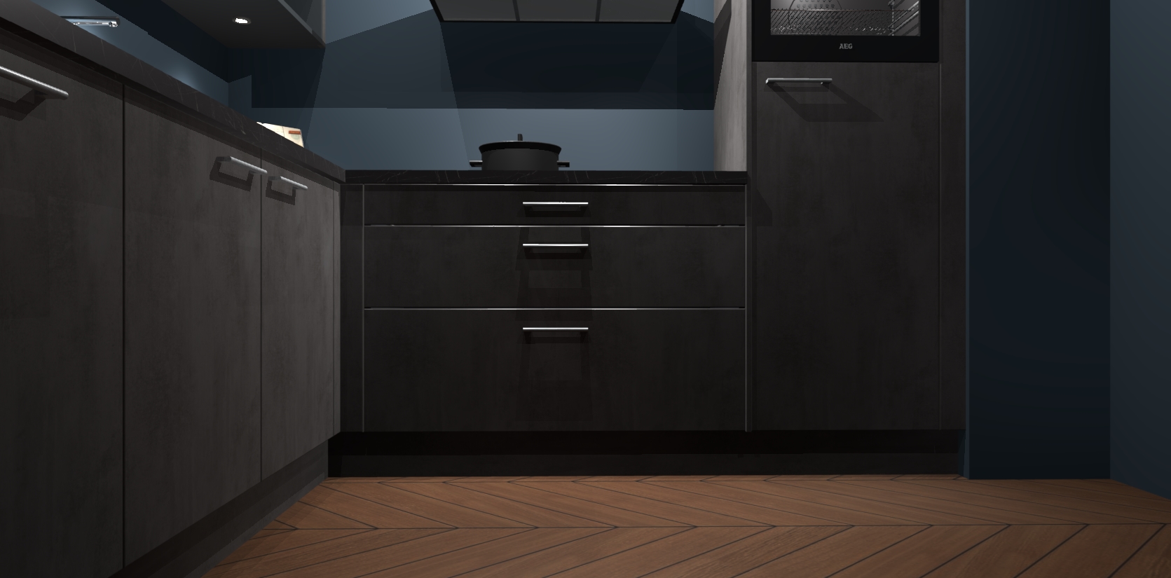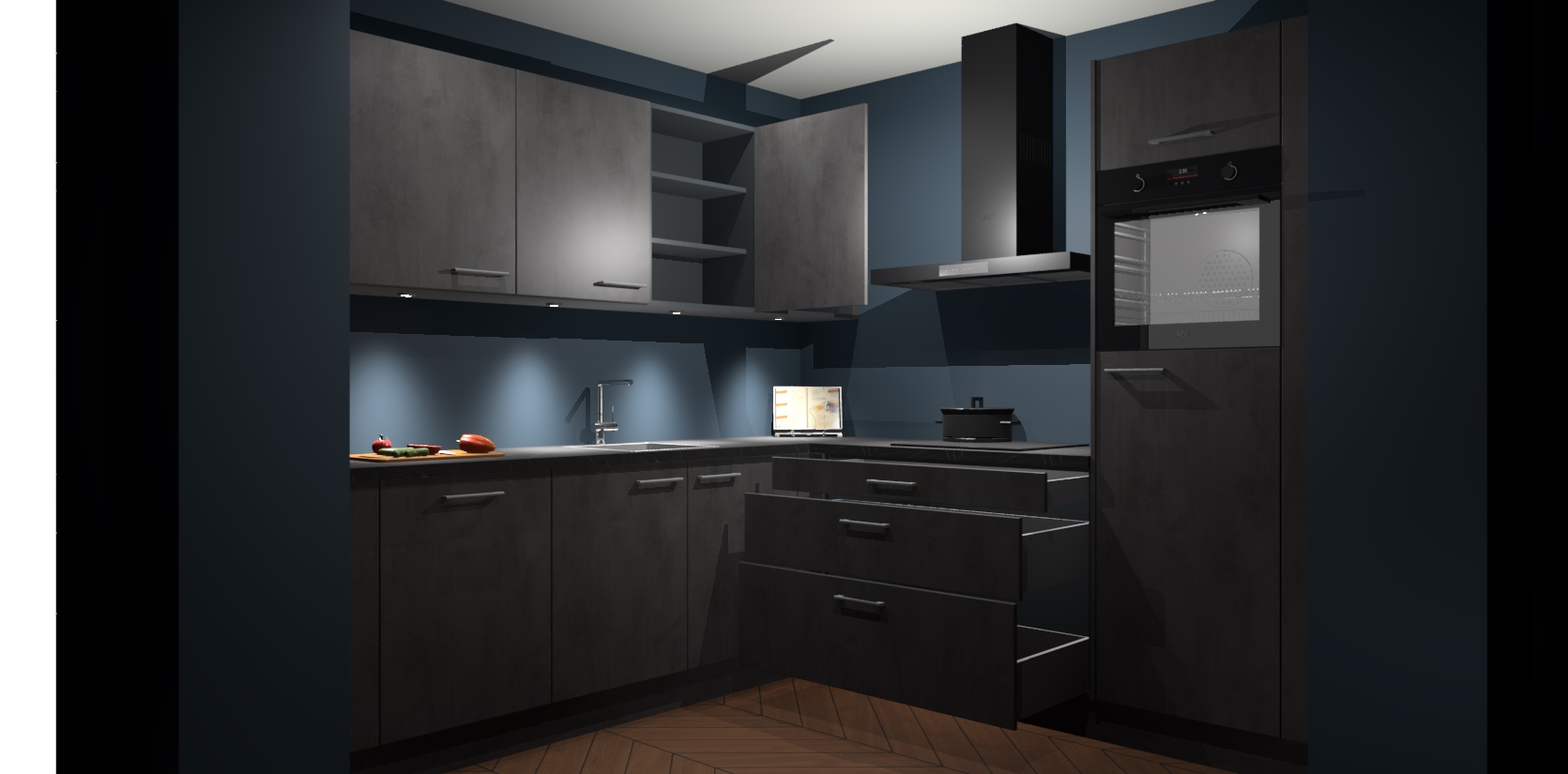 Met een modern, tijdloos design en ruime opslagruimte, zult u zich in no-time thuis voelen in uw nieuwe keuken. Uw leven wordt eenvoudiger met de soft-close deuren die voor het ultieme stille comfort zorgen - geen geluid dat u stoort terwijl u kookt. Ook is de keuken voorzien van 5 ingebouwde apparaten: een oven, inductie kookplaat, afzuigkap, vaatwasser en koelkast. Deze kunnen gemakkelijk na bestelling worden bijgewerkt naar AEG - waardoor uw luxe ervaring compleet is.
