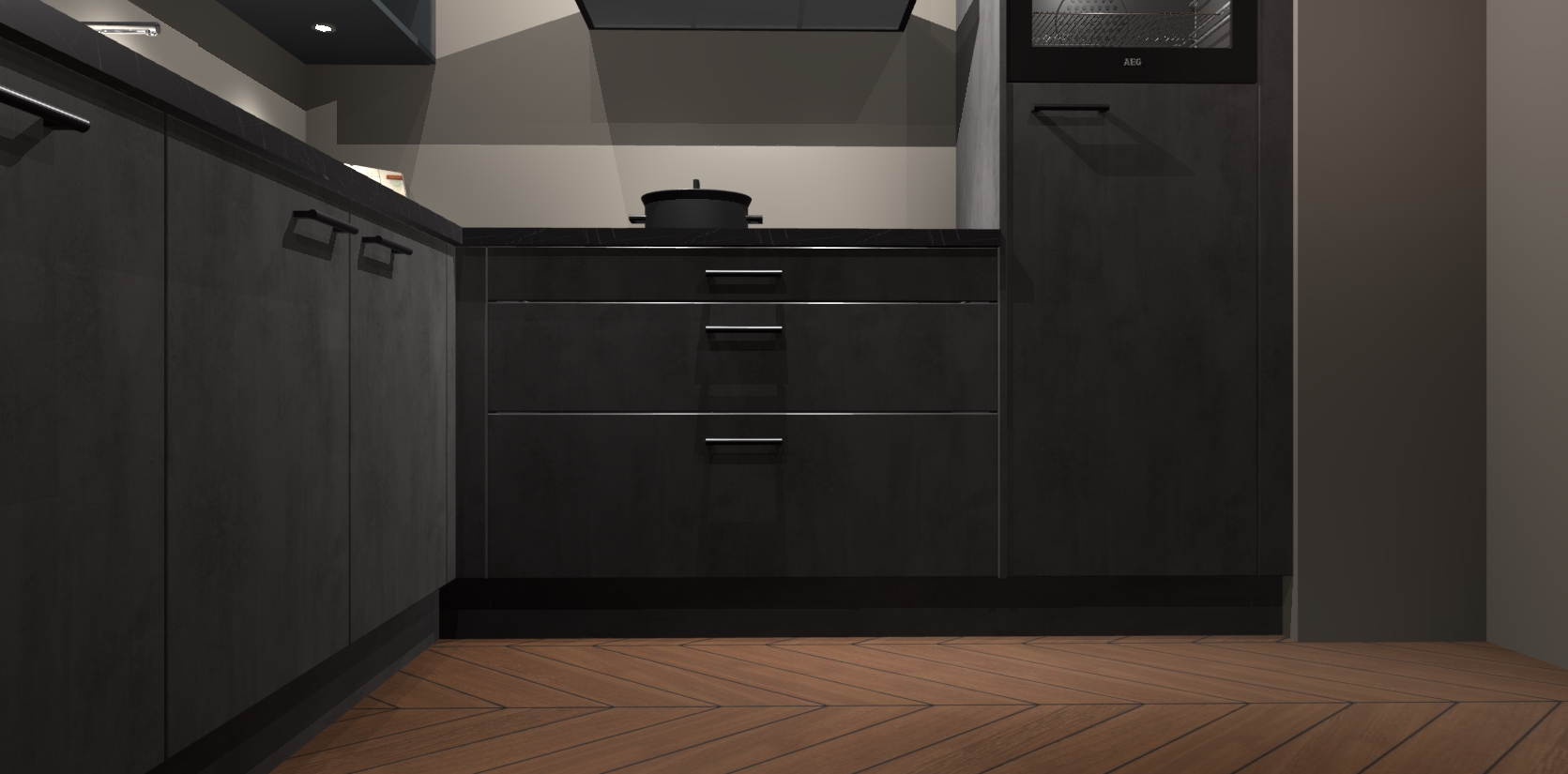 Wij presenteren de revolutie in keukens: de Beton Antraciet keuken Luanda. Met modern design, een tijdloos uiterlijk en kasten die al voor gemonteerd worden geleverd, laat deze stijlvolle keuken uw kookervaring op een hele nieuwe manier transformeren.