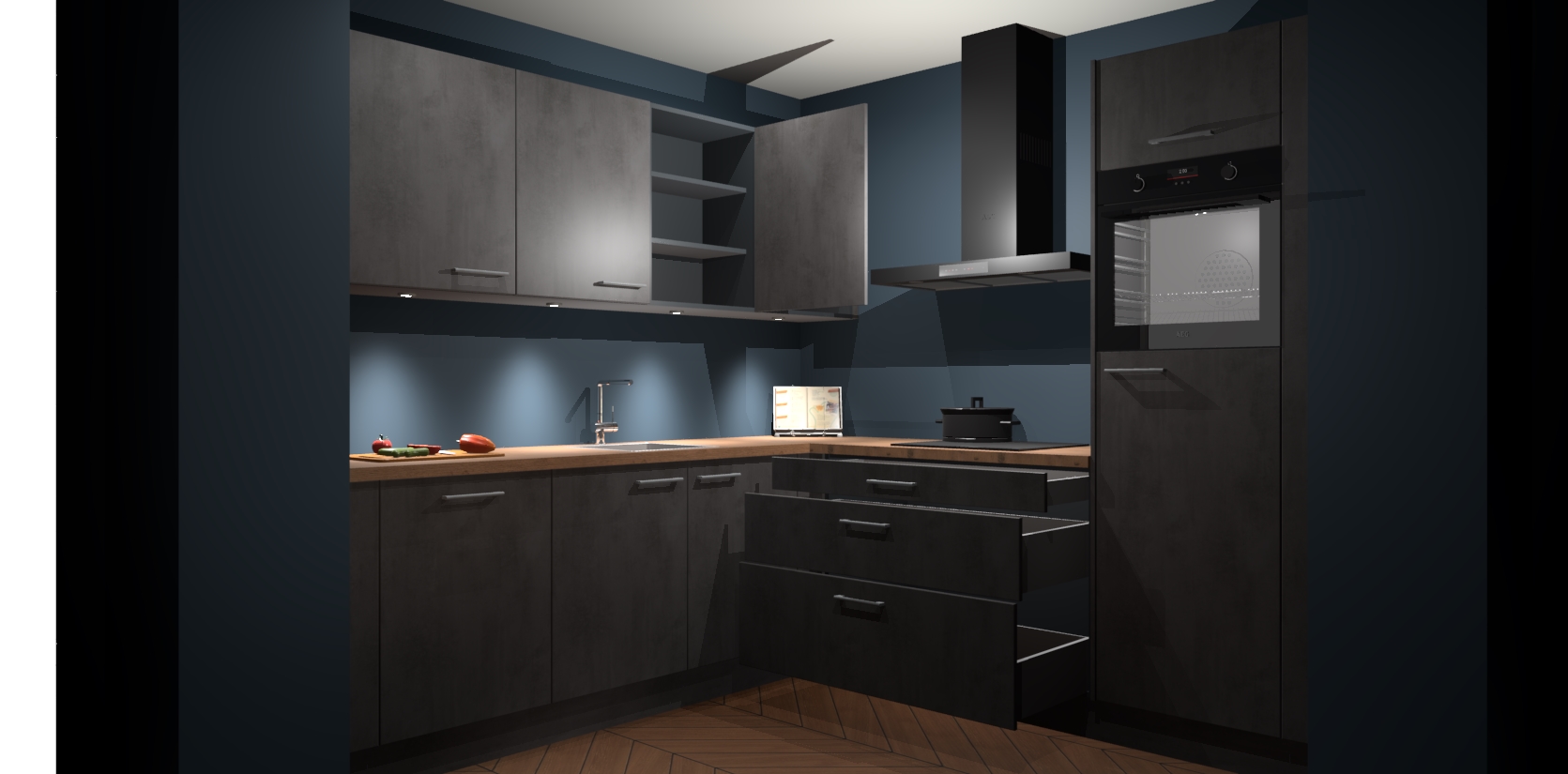 Wij presenteren de revolutie in keukens: de Beton Antraciet keuken Luanda. Met modern design, een tijdloos uiterlijk en kasten die al voor gemonteerd worden geleverd, laat deze stijlvolle keuken uw kookervaring op een hele nieuwe manier transformeren.