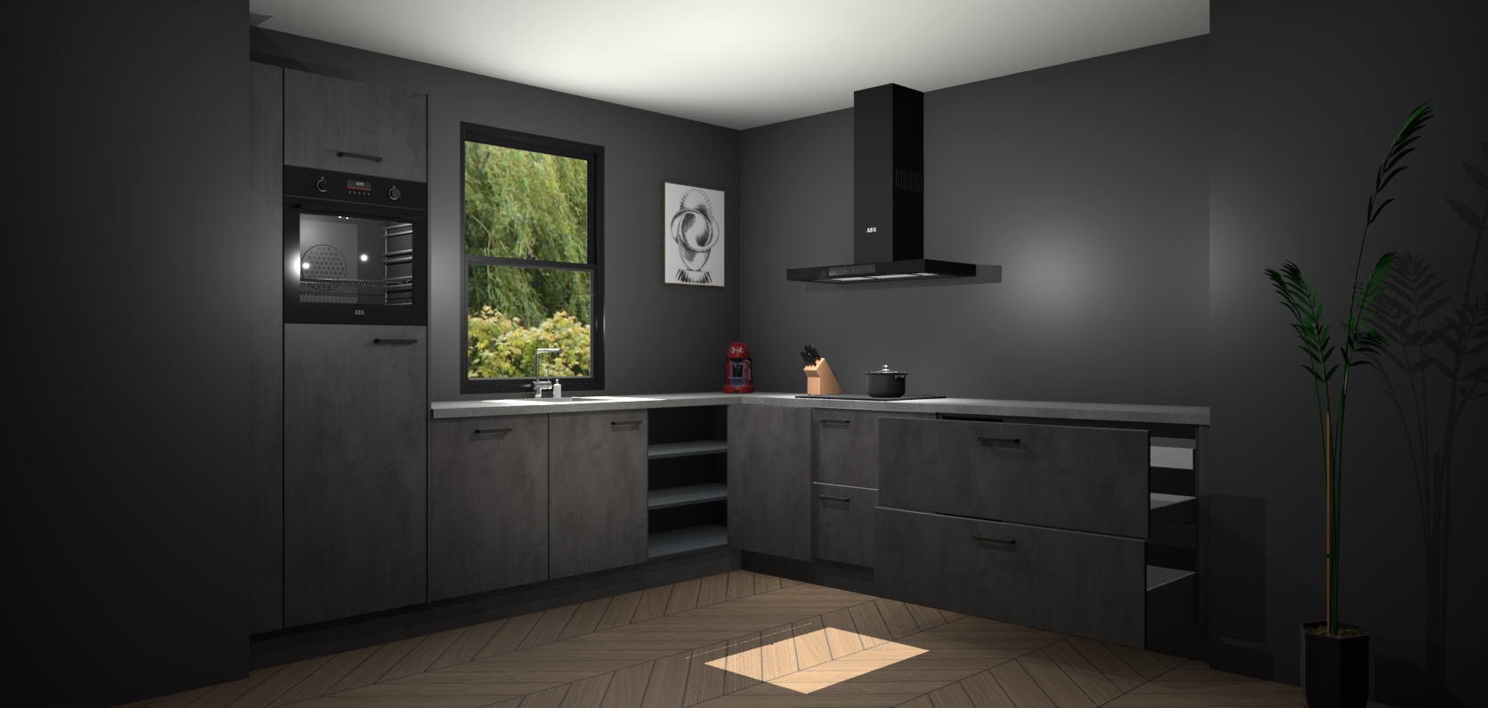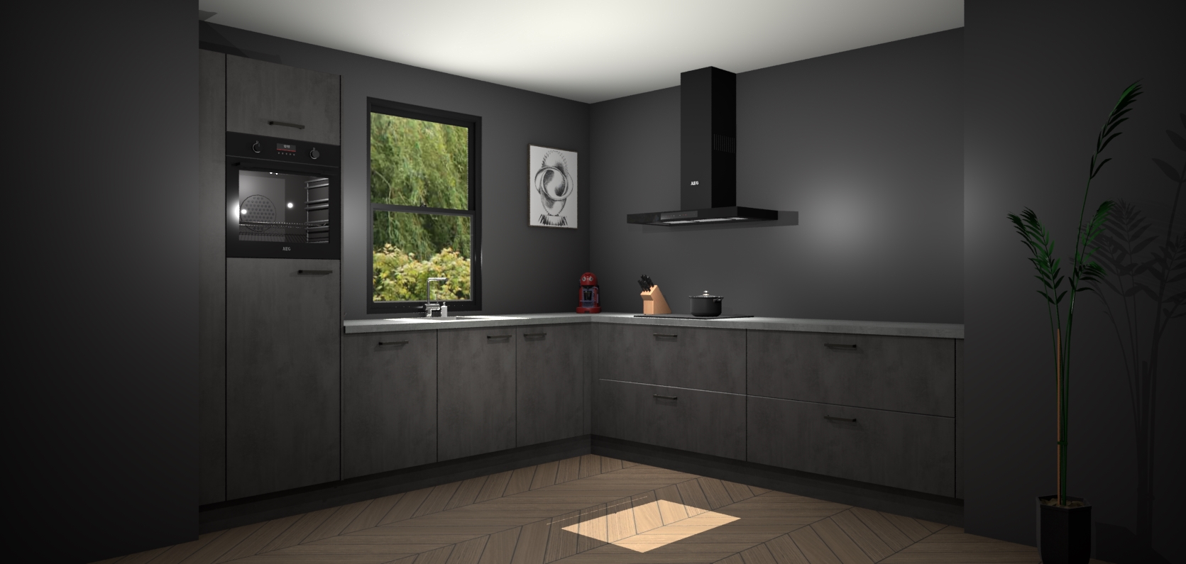Welkom bij de Beton antraciet keuken Lublin. Deze prachtige keuken zal de komende jaren het middelpunt van de belangstelling in uw huis zijn. Uitgerust met vijf inbouwapparaten komt u nooit kookgereedschap tekort. Bovendien geeft de warme houtlook elke ruimte een uitnodigende en tijdloze uitstraling.