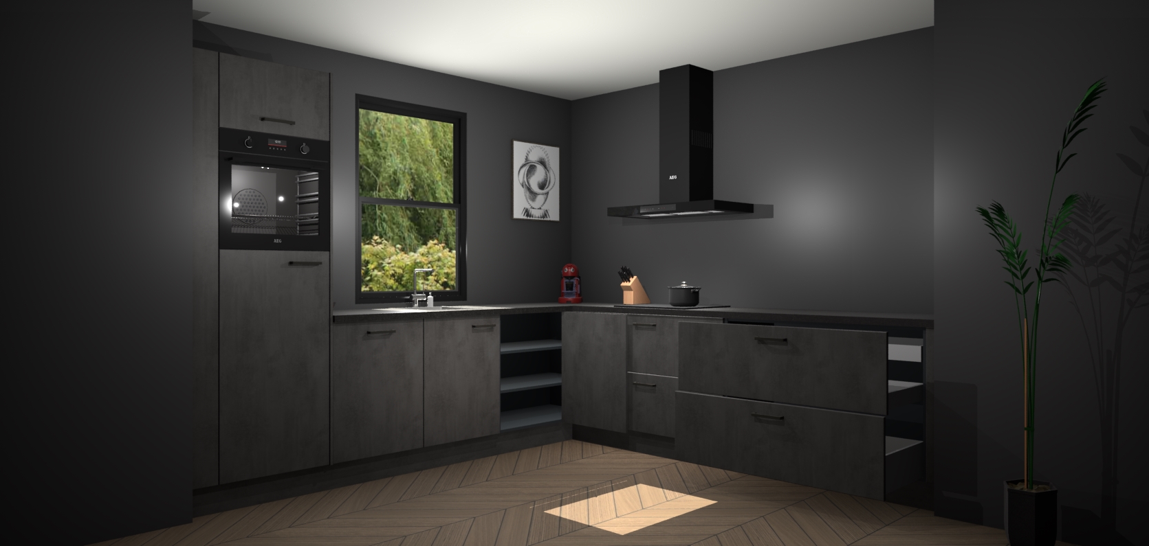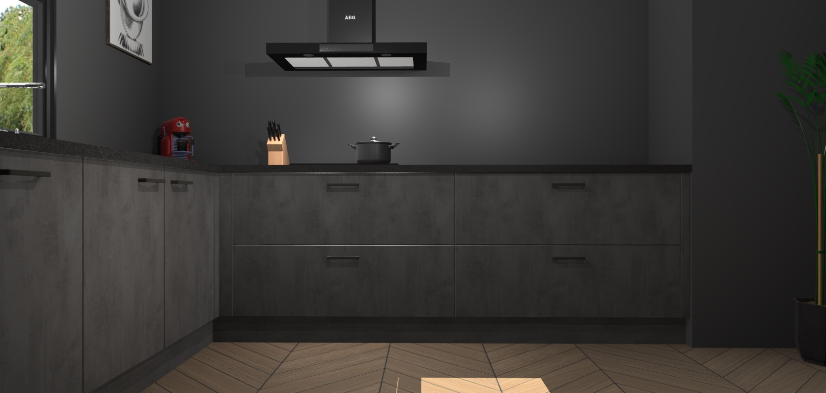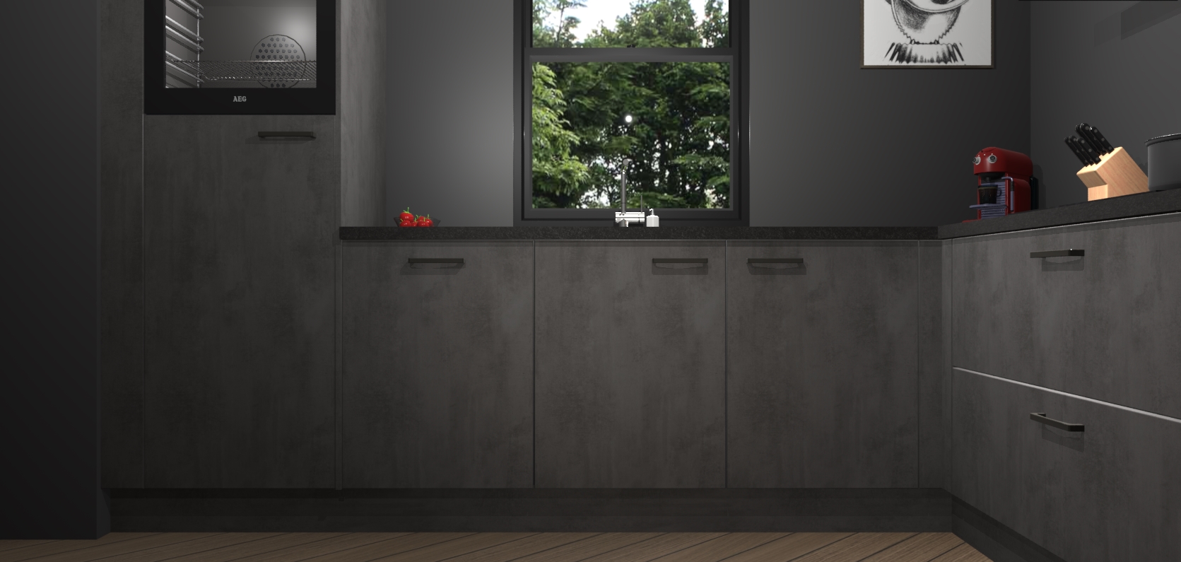 Welkom bij de Beton antraciet keuken Lublin. Deze prachtige keuken zal de komende jaren het middelpunt van de belangstelling in uw huis zijn. Uitgerust met vijf inbouwapparaten komt u nooit kookgereedschap tekort. Bovendien geeft de warme houtlook elke ruimte een uitnodigende en tijdloze uitstraling.