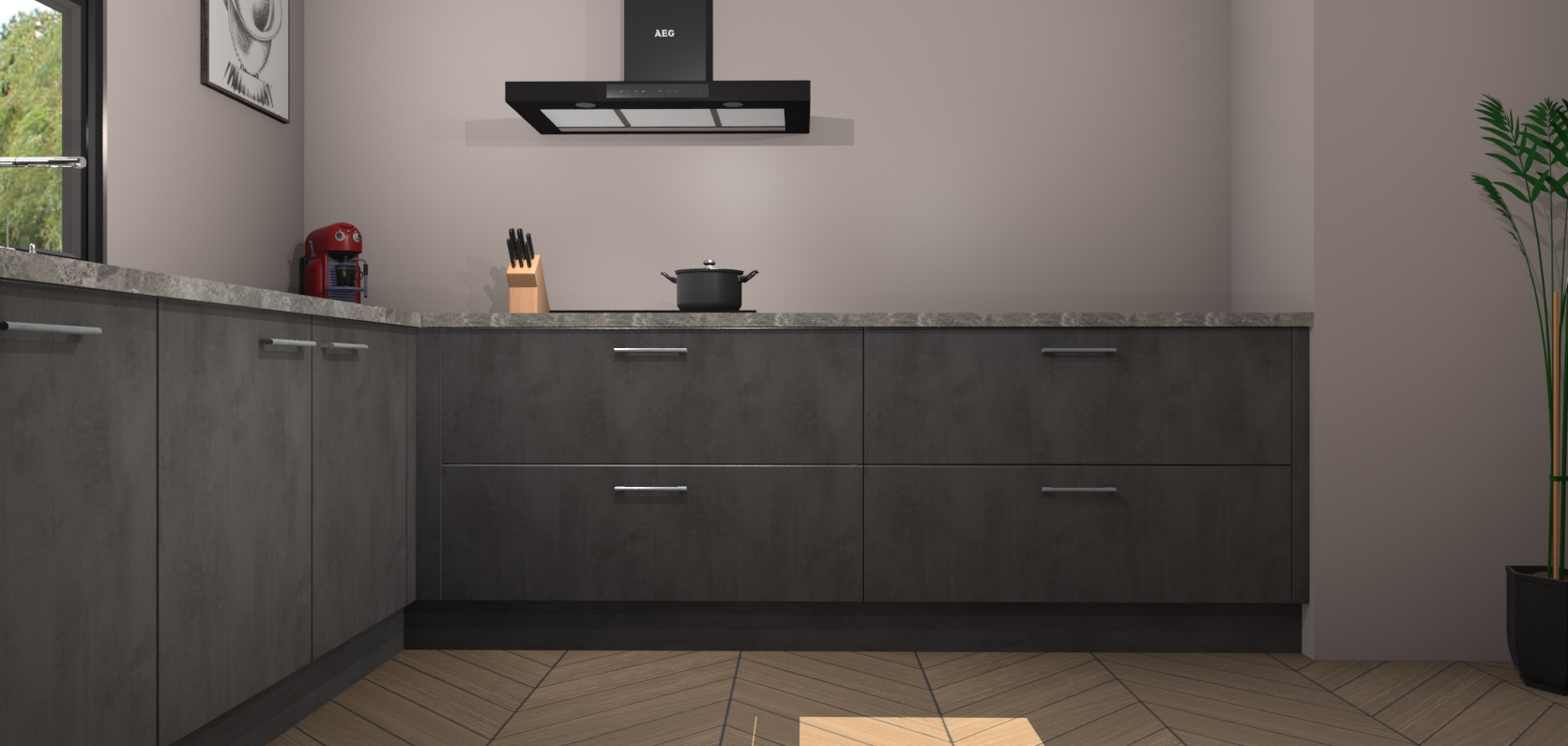 Inclusief plinten, stelpoten en werkblad
