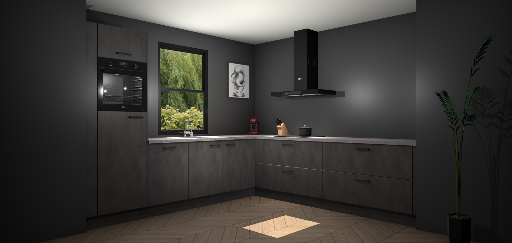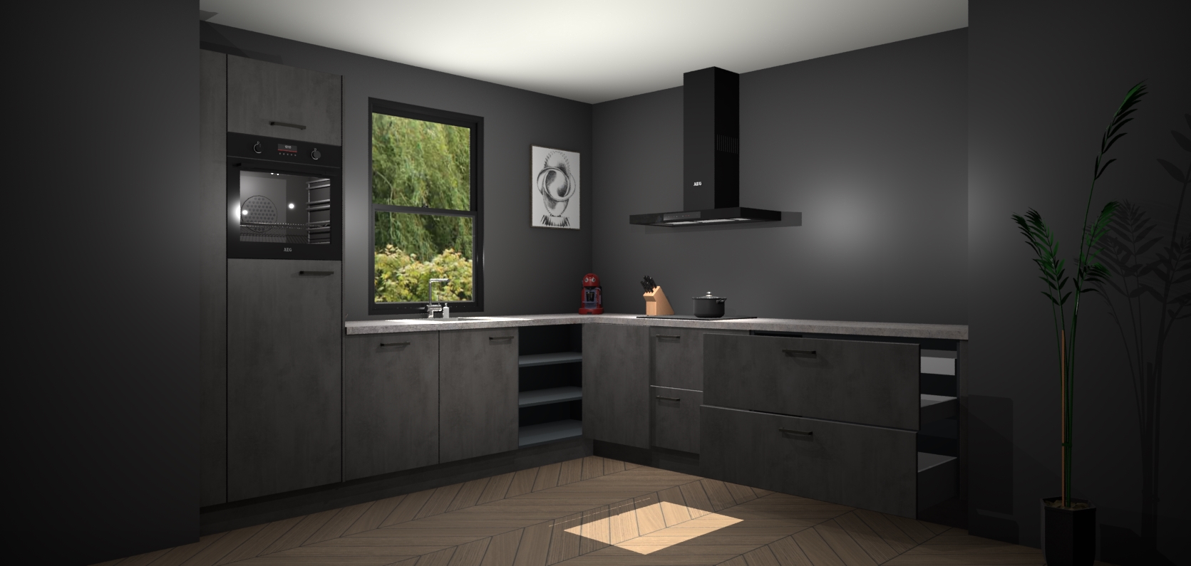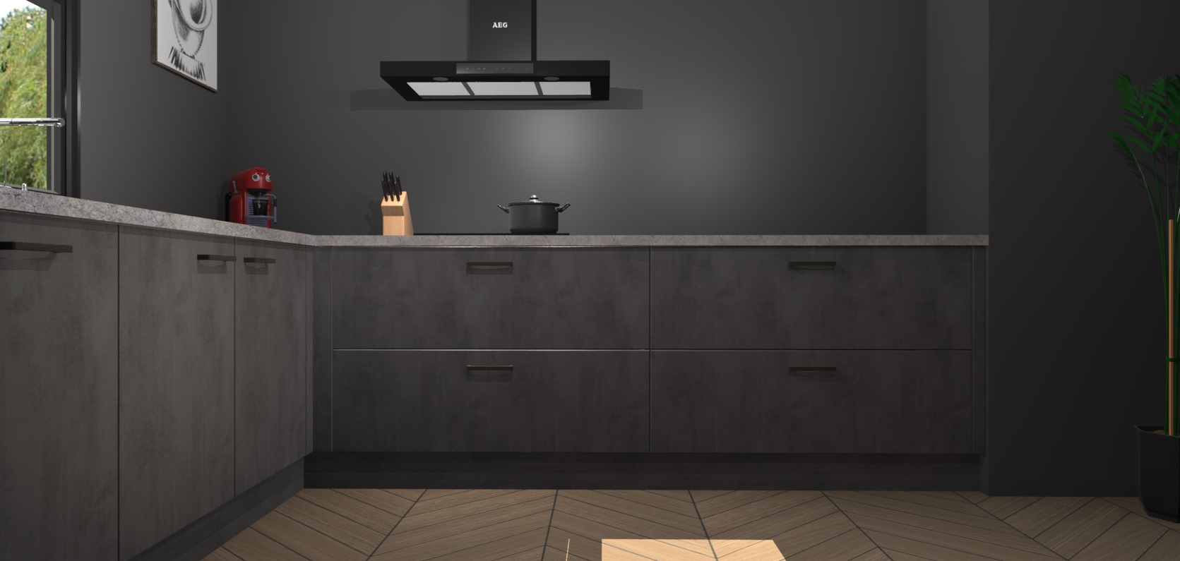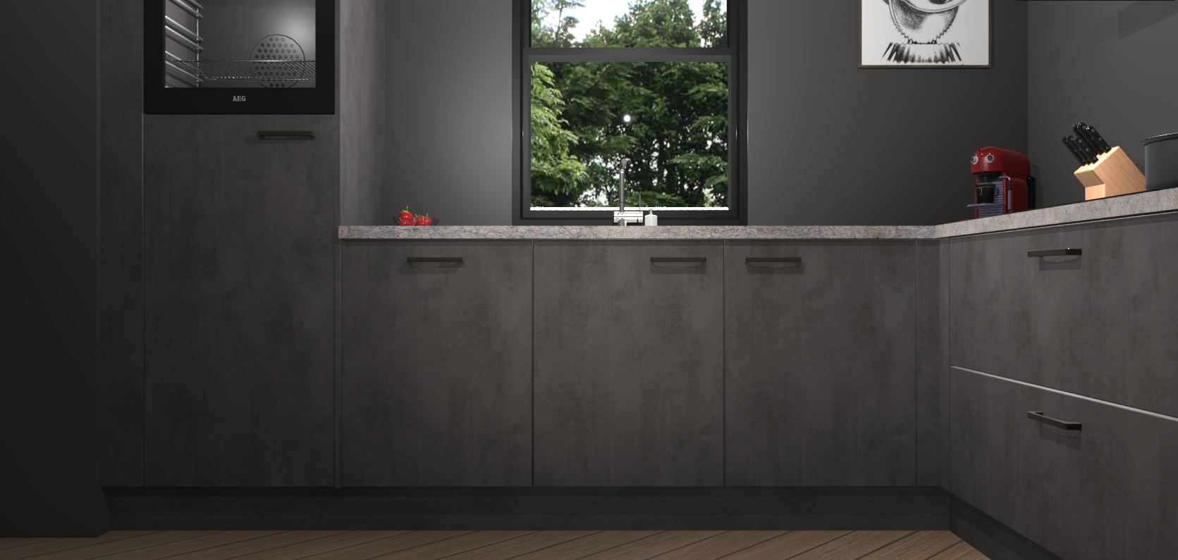 Welkom bij de Beton antraciet keuken Lublin. Deze prachtige keuken zal de komende jaren het middelpunt van de belangstelling in uw huis zijn. Uitgerust met vijf inbouwapparaten komt u nooit kookgereedschap tekort. Bovendien geeft de warme houtlook elke ruimte een uitnodigende en tijdloze uitstraling.