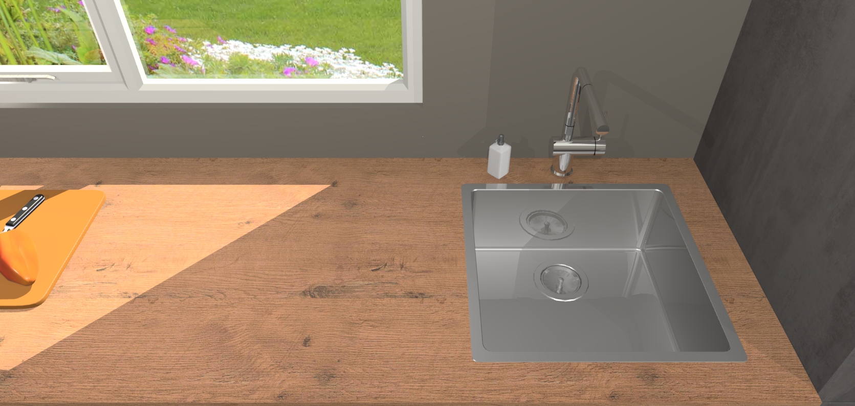 • De spoelbak is nog niet in gevreesd. Dit dient tijdens het werk gedaan te worden