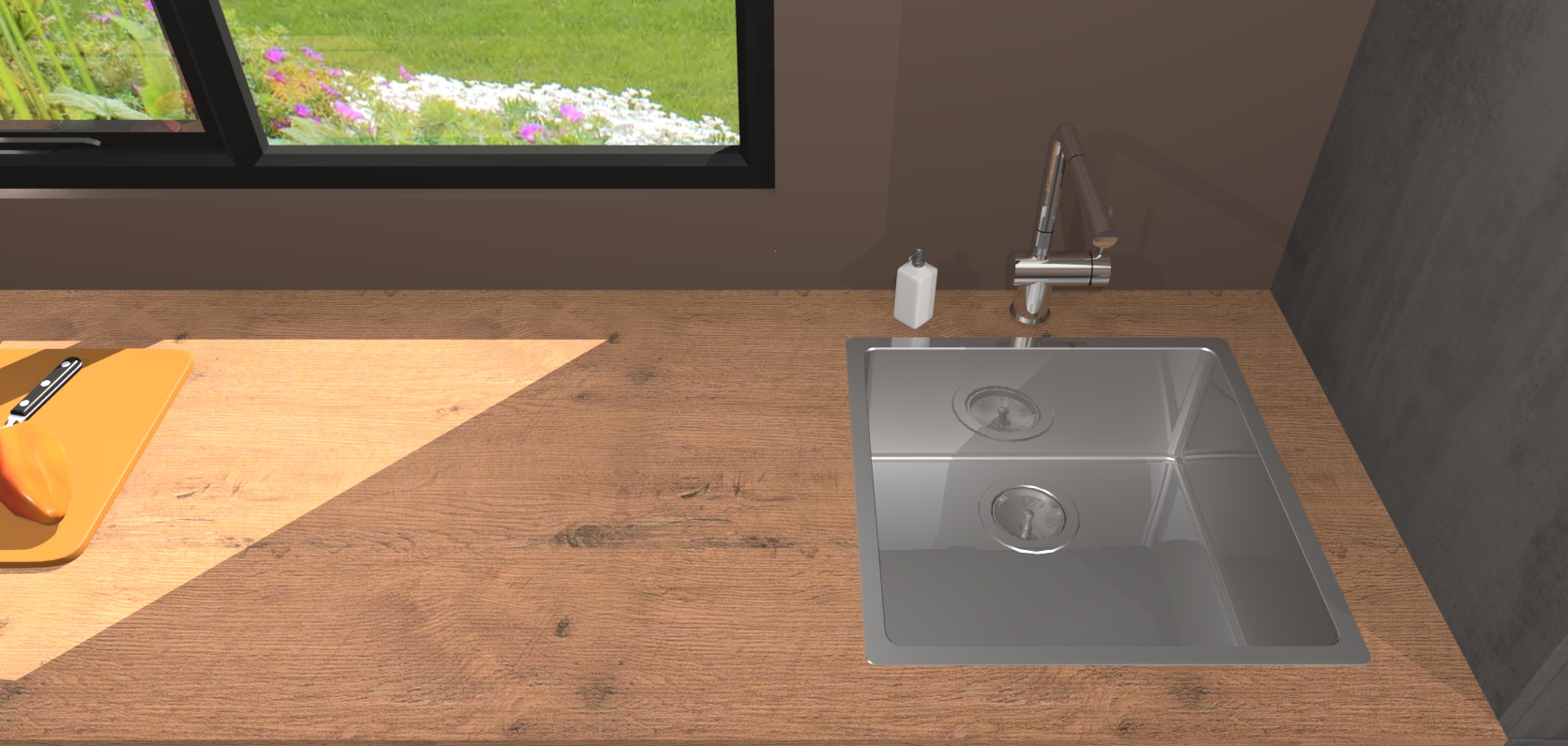 - De spoelbak is nog niet in gevreesd. Dit dient tijdens het werk gedaan te worden