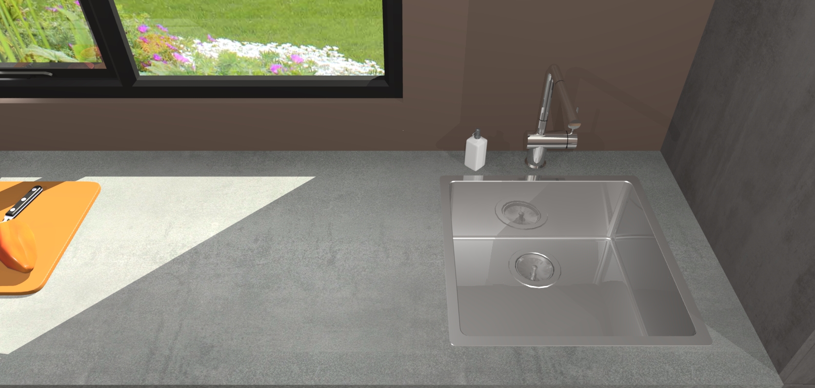 - De spoelbak is nog niet in gevreesd. Dit dient tijdens het werk gedaan te worden