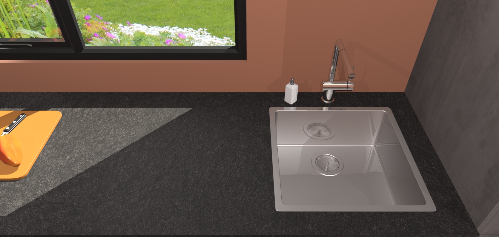 - De spoelbak is nog niet in gevreesd. Dit dient tijdens het werk gedaan te worden