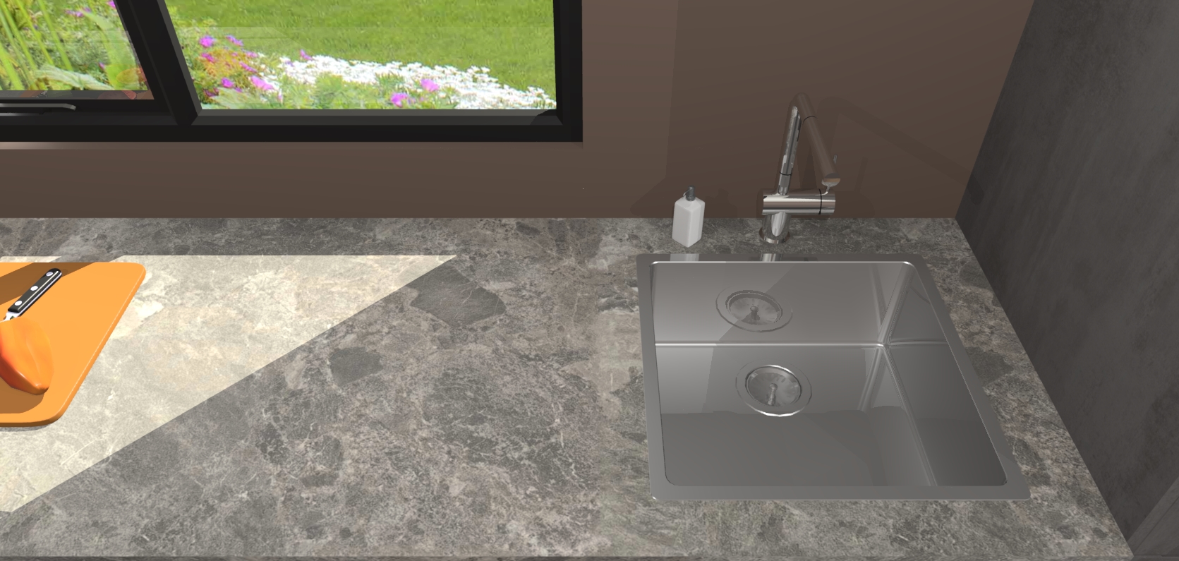 - De spoelbak is nog niet in gevreesd. Dit dient tijdens het werk gedaan te worden