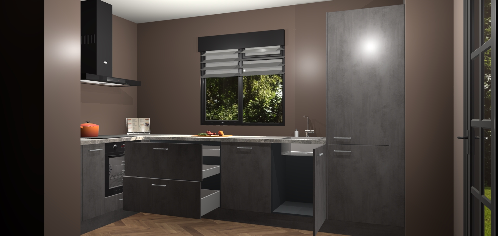 Moedige modernisten! De Beton Antraciet keuken Luzern is het perfecte antwoord op al uw keukendromen. Dit geraffineerde, tijdloze ontwerp combineert strakke kasten zodat u die dure look krijgt zonder het dure prijskaartje. We weten dat planning en uitvoering de sleutels zijn tot een geslaagde keukenrenovatie, dus hebben we ervoor gezorgd dat we vijf inbouwapparaten in ons pakket hebben: een oven, inductiekookplaat, afzuigkap, vaatwasser en koelkast. Deze kunnen na bestelling gemakkelijk worden uitgebreid voor nog meer gemak.