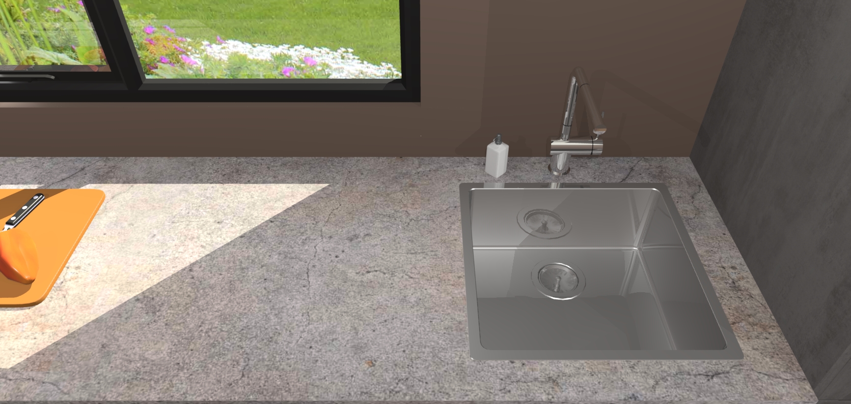 - De spoelbak is nog niet in gevreesd. Dit dient tijdens het werk gedaan te worden