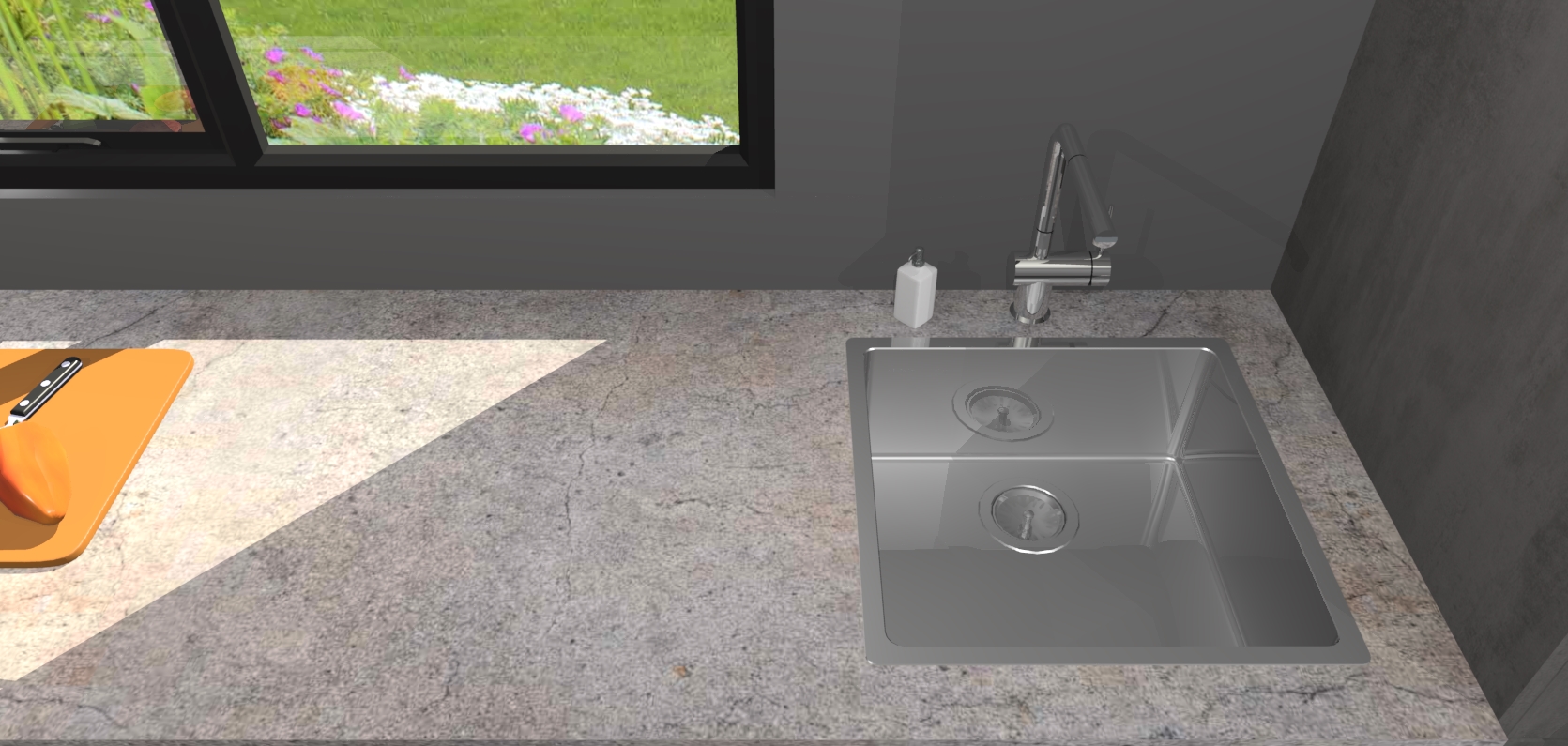 - De spoelbak is nog niet in gevreesd. Dit dient tijdens het werk gedaan te worden