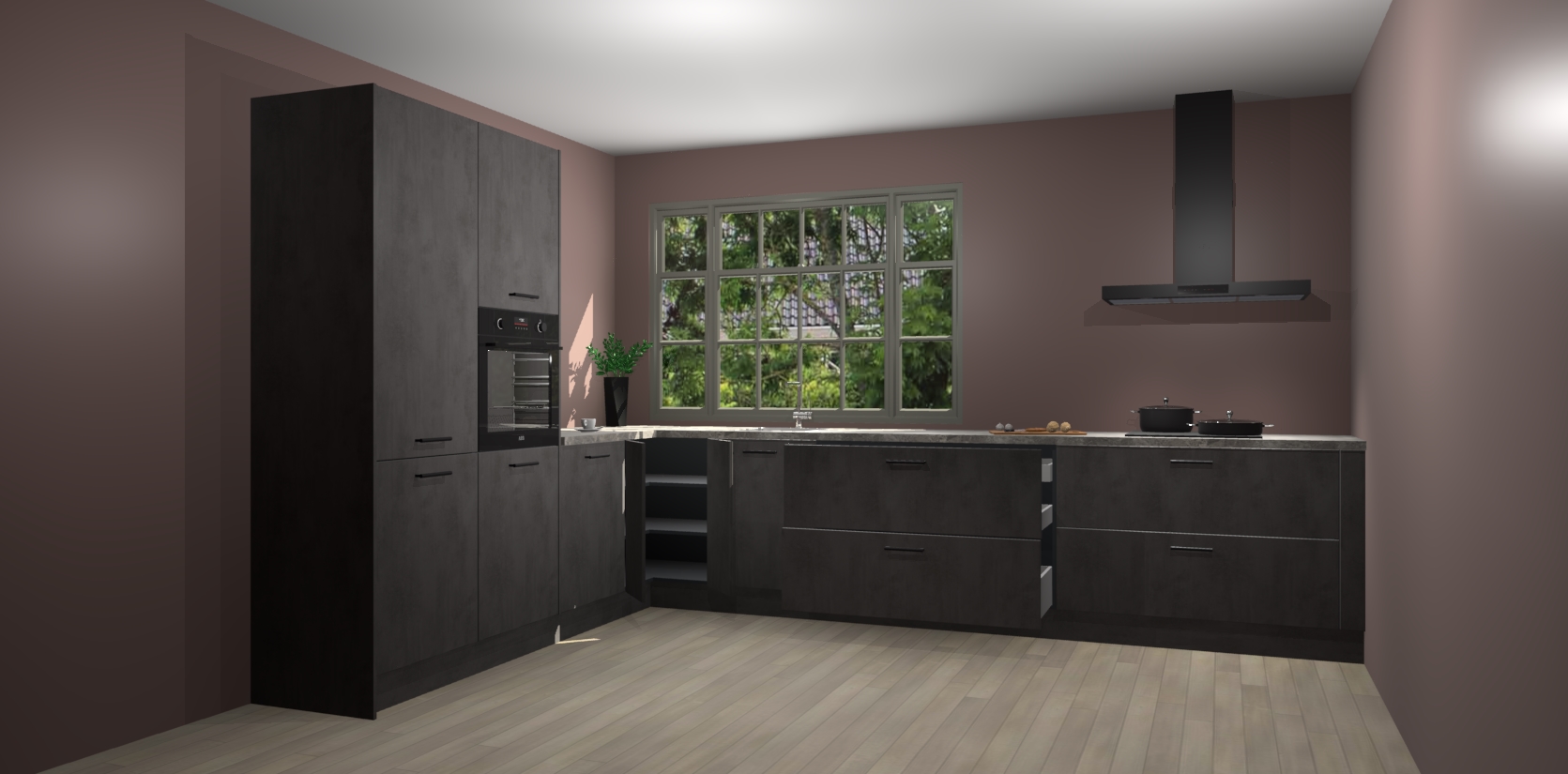 Kom dichtbij de perfecte keuken van uw dromen met de Beton Antraciet keuken Malaga. Met een prachtige houtlook en eigentijds ontwerp, straalt deze keuken warmte en sfeer uit. Of u nu liefhebber bent van traditionele of moderne stijlen, er is genoeg ruimte om aan al uw behoeften te voldoen.