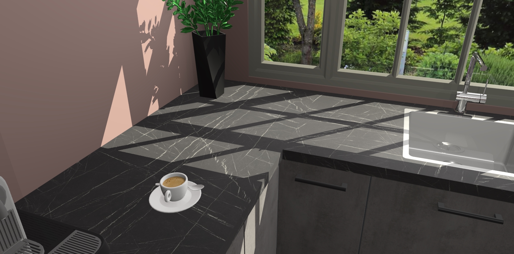 - Bij een hoekwerkblad zijn de hoeken in gevreesd en op maat gemaakt