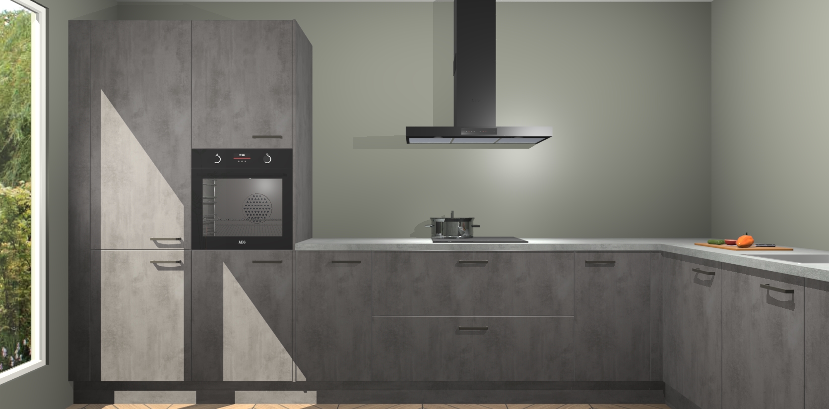 Wij presenteren de revolutie in keukens: de Beton Antraciet keuken Napels. Met modern design, een tijdloos uiterlijk en kasten die al voor gemonteerd worden geleverd, laat deze stijlvolle keuken uw kookervaring op een hele nieuwe manier transformeren.