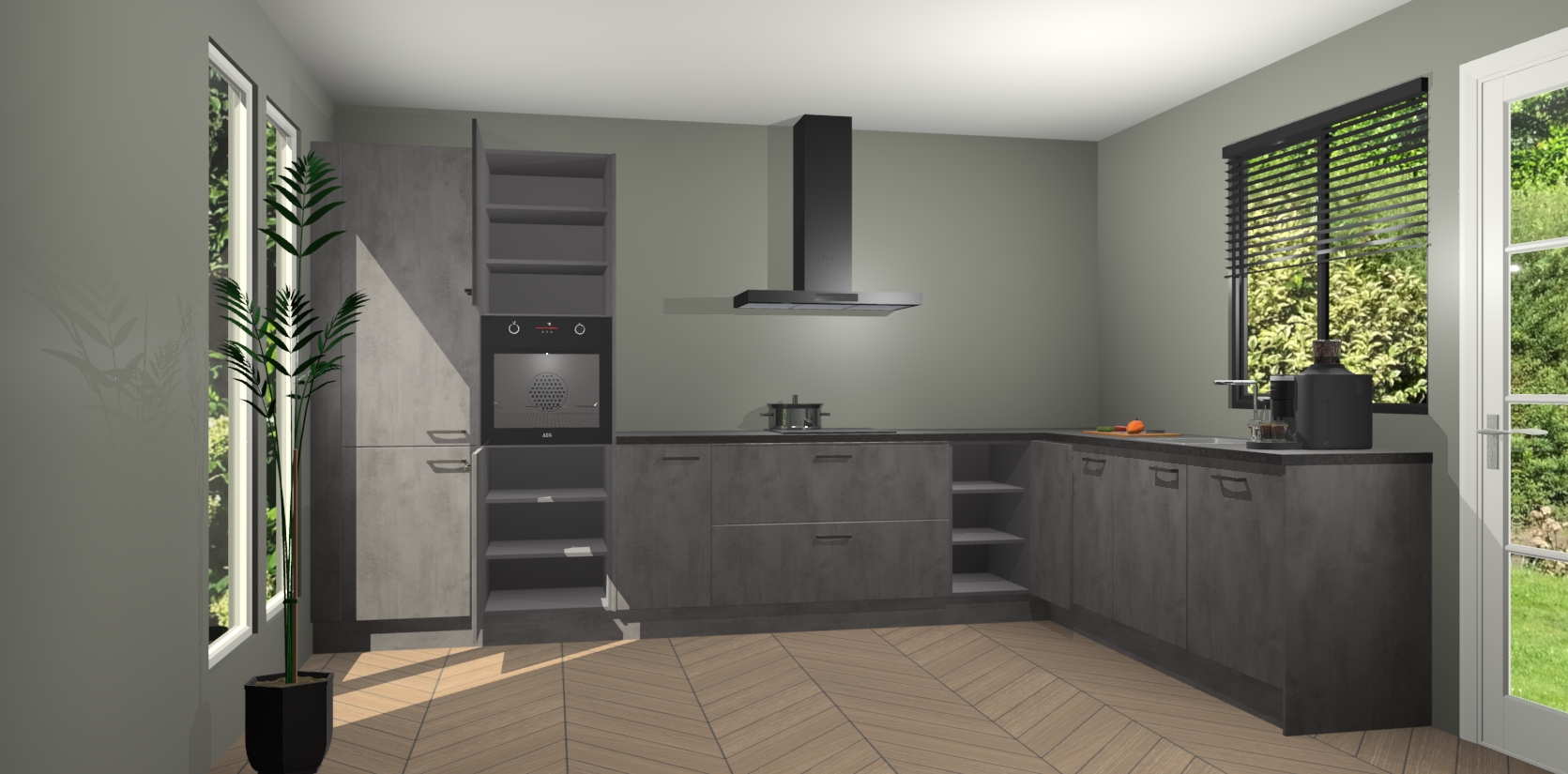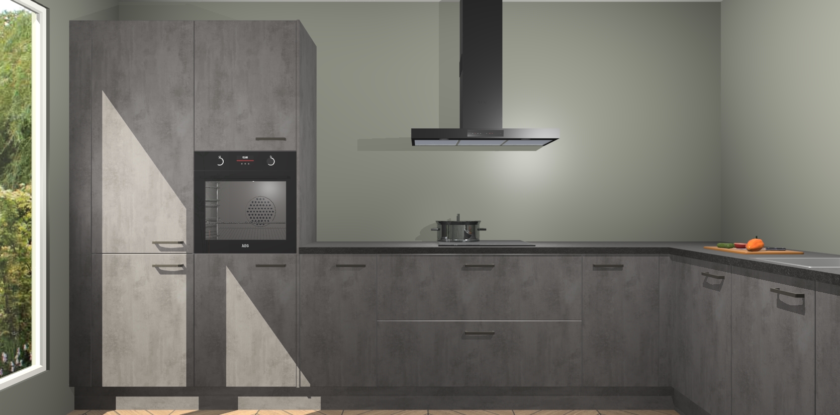 Wij presenteren de revolutie in keukens: de Beton Antraciet keuken Napels. Met modern design, een tijdloos uiterlijk en kasten die al voor gemonteerd worden geleverd, laat deze stijlvolle keuken uw kookervaring op een hele nieuwe manier transformeren.