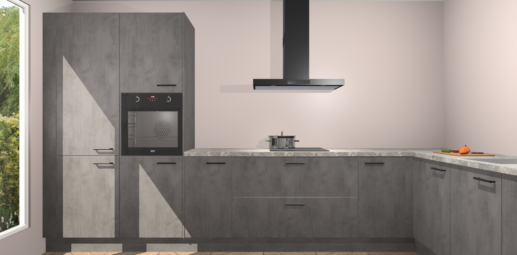 Wij presenteren de revolutie in keukens: de Beton Antraciet keuken Napels. Met modern design, een tijdloos uiterlijk en kasten die al voor gemonteerd worden geleverd, laat deze stijlvolle keuken uw kookervaring op een hele nieuwe manier transformeren.