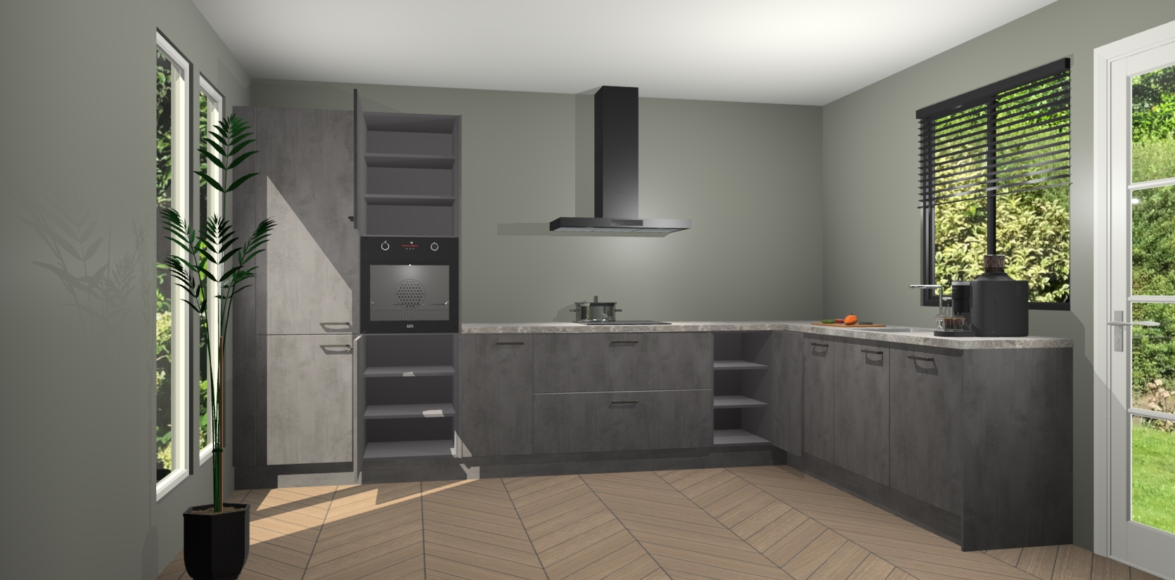 Wij presenteren de revolutie in keukens: de Beton Antraciet keuken Napels. Met modern design, een tijdloos uiterlijk en kasten die al voor gemonteerd worden geleverd, laat deze stijlvolle keuken uw kookervaring op een hele nieuwe manier transformeren.