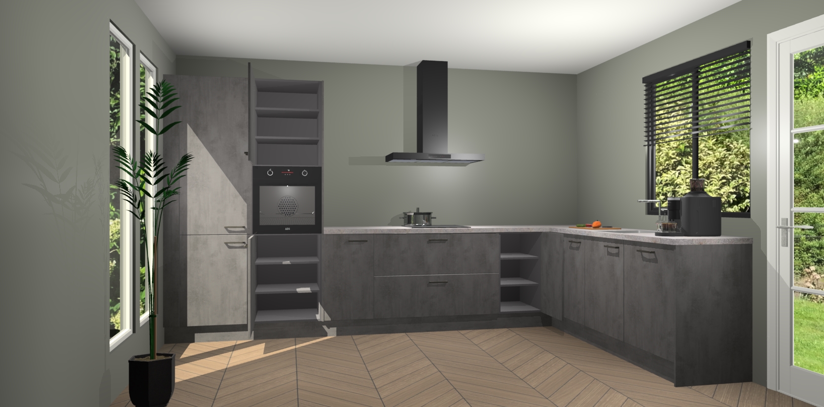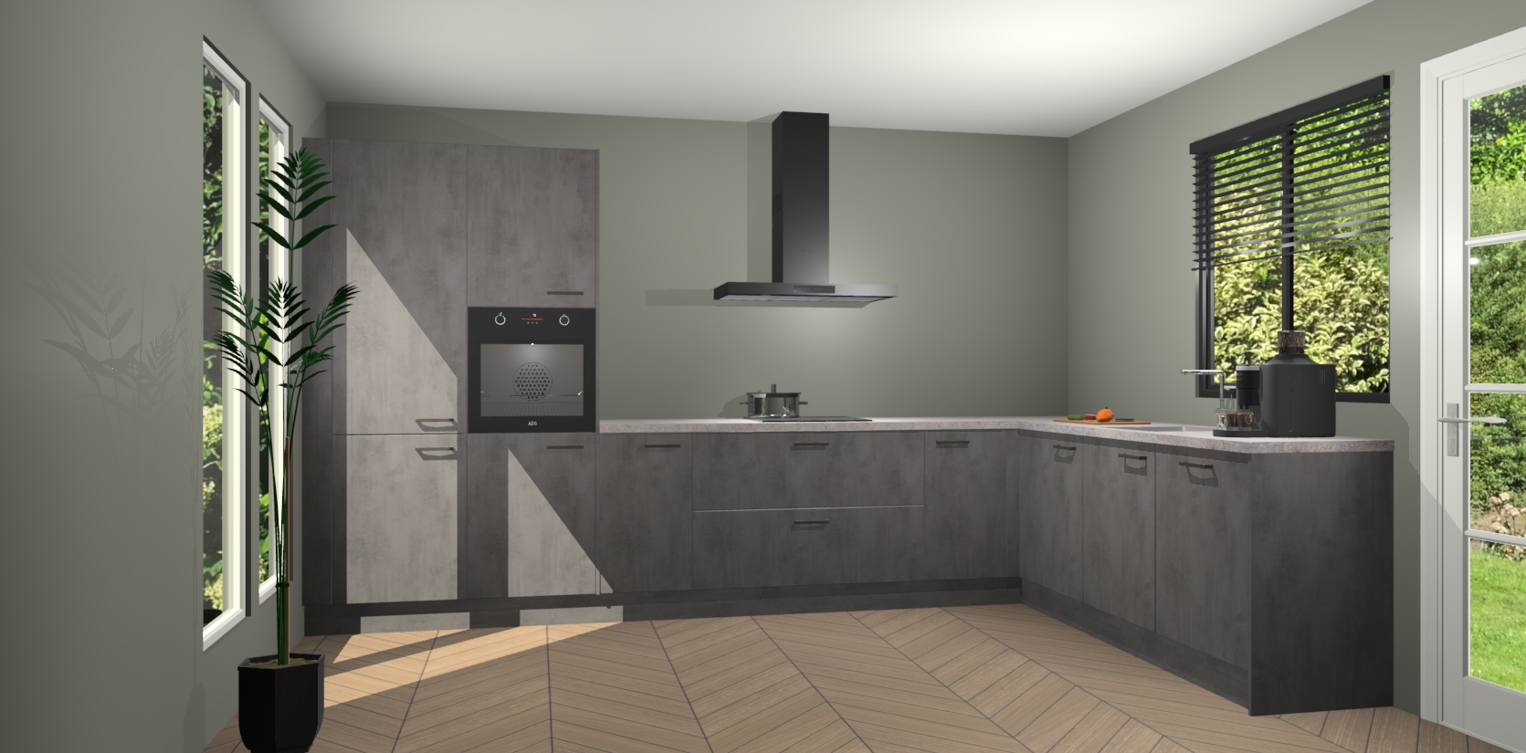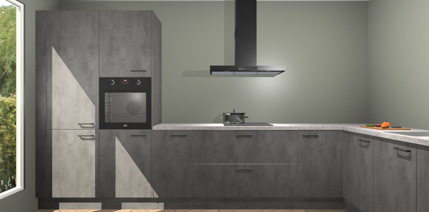 Wij presenteren de revolutie in keukens: de Beton Antraciet keuken Napels. Met modern design, een tijdloos uiterlijk en kasten die al voor gemonteerd worden geleverd, laat deze stijlvolle keuken uw kookervaring op een hele nieuwe manier transformeren.