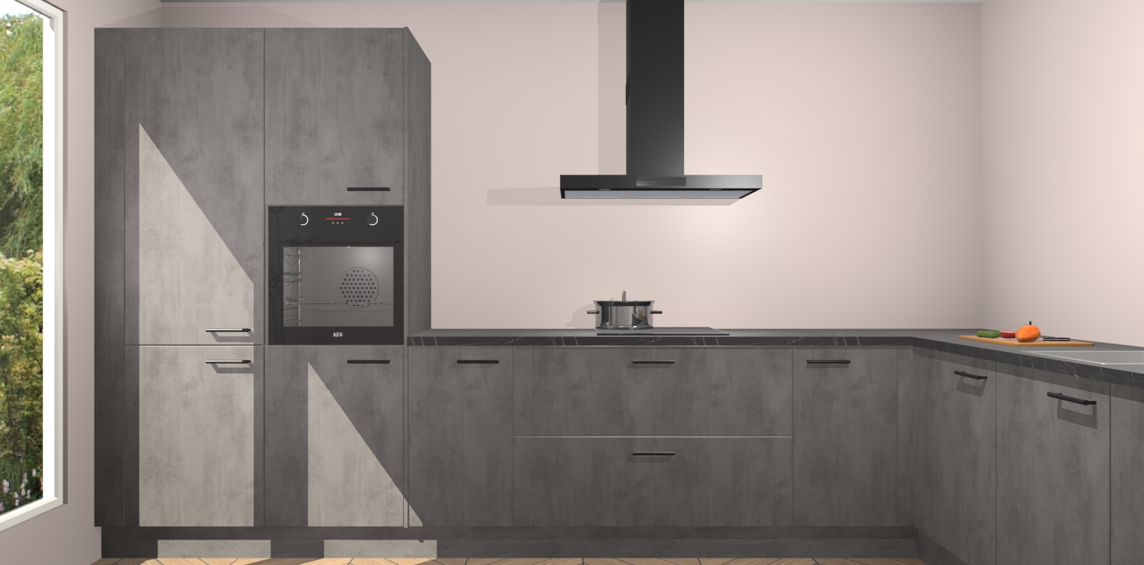 Wij presenteren de revolutie in keukens: de Beton Antraciet keuken Napels. Met modern design, een tijdloos uiterlijk en kasten die al voor gemonteerd worden geleverd, laat deze stijlvolle keuken uw kookervaring op een hele nieuwe manier transformeren.