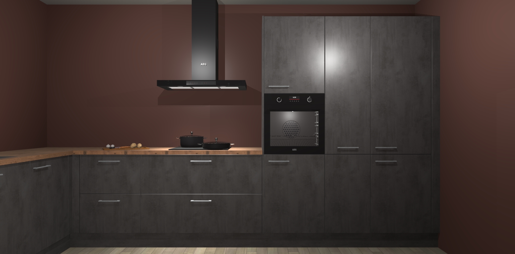 Welkom bij de beton antraciet keuken Nuuk. Deze prachtige keuken zal de komende jaren het middelpunt van de belangstelling in uw huis zijn. Uitgerust met vijf inbouwapparaten komt u nooit kookgereedschap tekort.