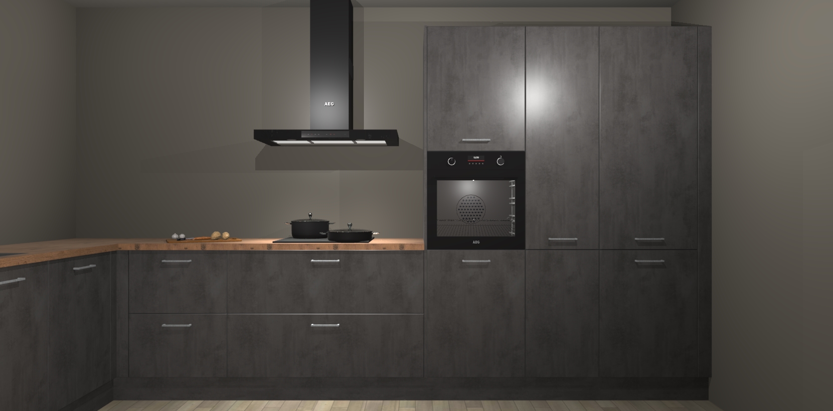Welkom bij de beton antraciet keuken Nuuk. Deze prachtige keuken zal de komende jaren het middelpunt van de belangstelling in uw huis zijn. Uitgerust met vijf inbouwapparaten komt u nooit kookgereedschap tekort.