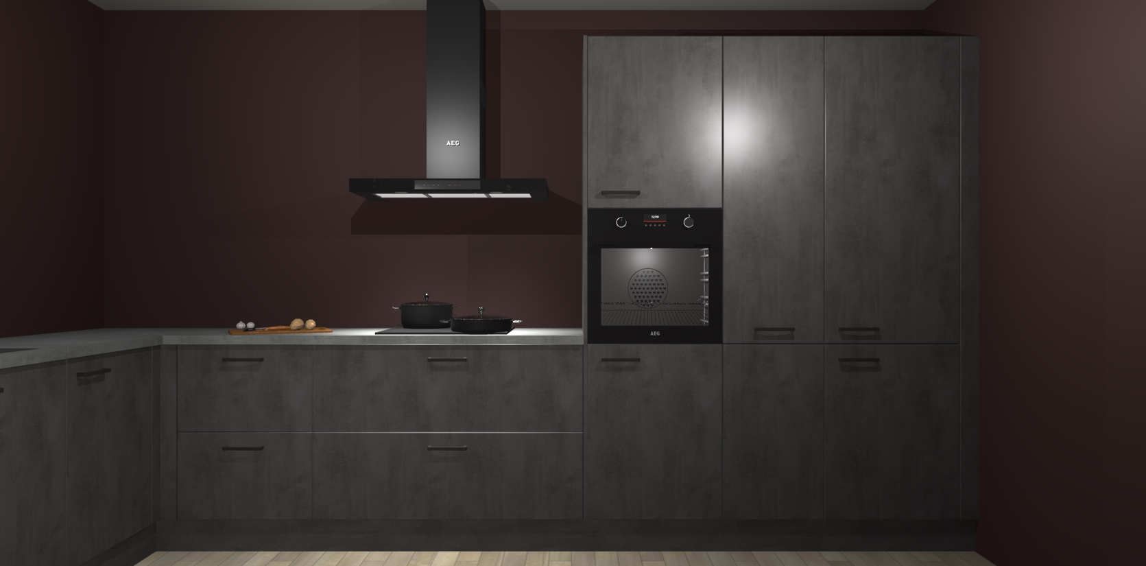Welkom bij de beton antraciet keuken Nuuk. Deze prachtige keuken zal de komende jaren het middelpunt van de belangstelling in uw huis zijn. Uitgerust met vijf inbouwapparaten komt u nooit kookgereedschap tekort.