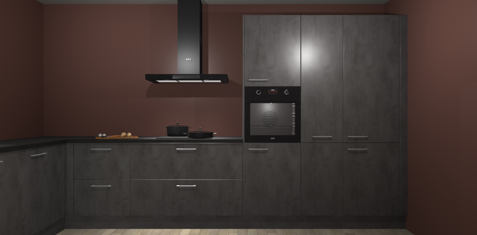 Welkom bij de beton antraciet keuken Nuuk. Deze prachtige keuken zal de komende jaren het middelpunt van de belangstelling in uw huis zijn. Uitgerust met vijf inbouwapparaten komt u nooit kookgereedschap tekort.